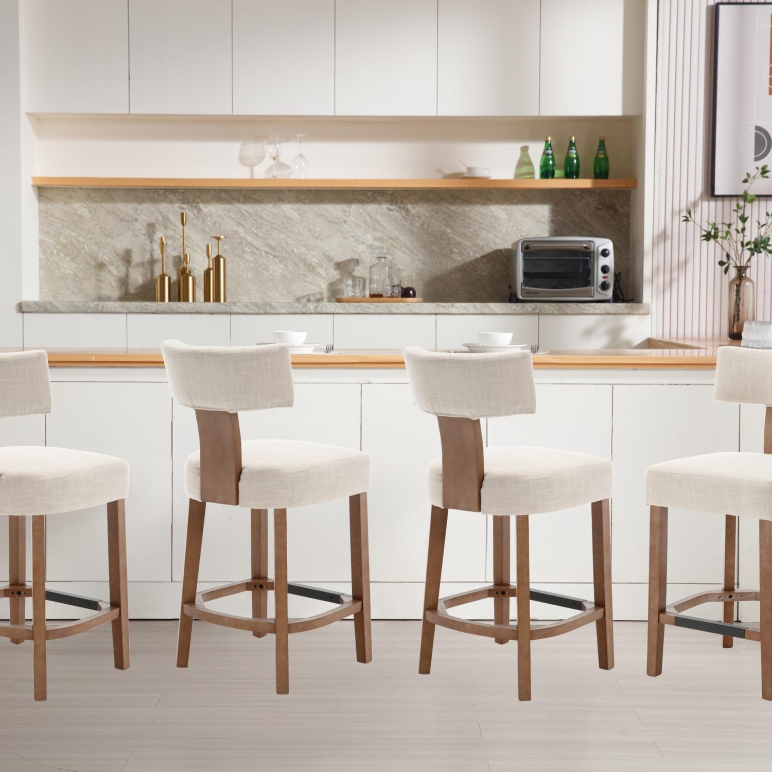 RIVOVA 26” Bar Stools Set of 4 Counter Height Bar Stool, Modern Kitchen Barstools with Back and Wood Legs, Farmhouse Upholstered Island Stools Countertop Bar Chairs, Beige