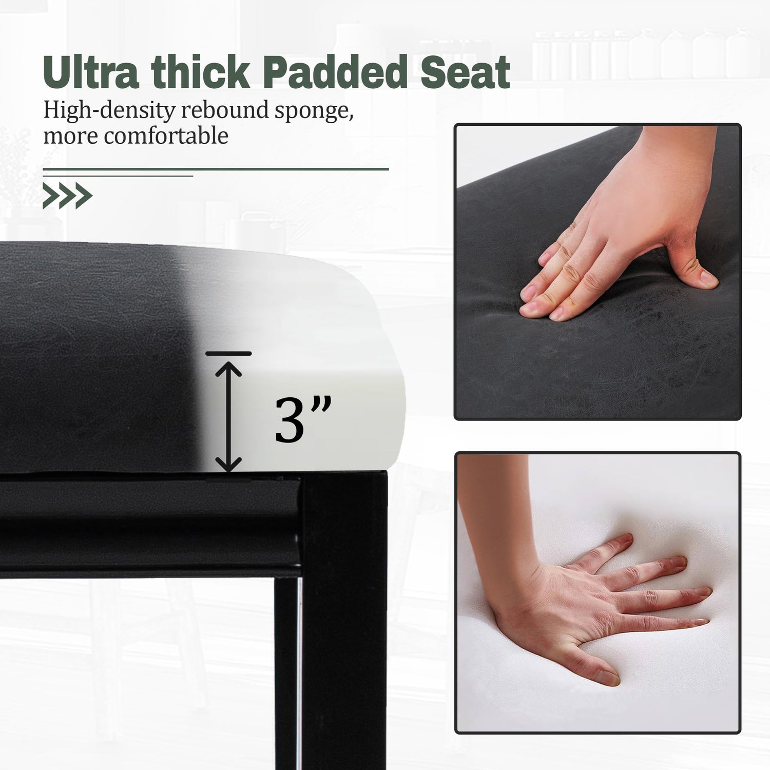 • Water Resistant Faux Leather Padded Seat - The water resistant faux leather seat is also stain resistant and scratch resistant, which is easy to clean and maintance. These exquisite faux leather barstools lend the luxe feel you’ve been craving for your kitchen's countertop, island, or in your dining space. You and your guests will love the contoured seat, high-density, padded sponge cushion, and supple faux leather upholstery