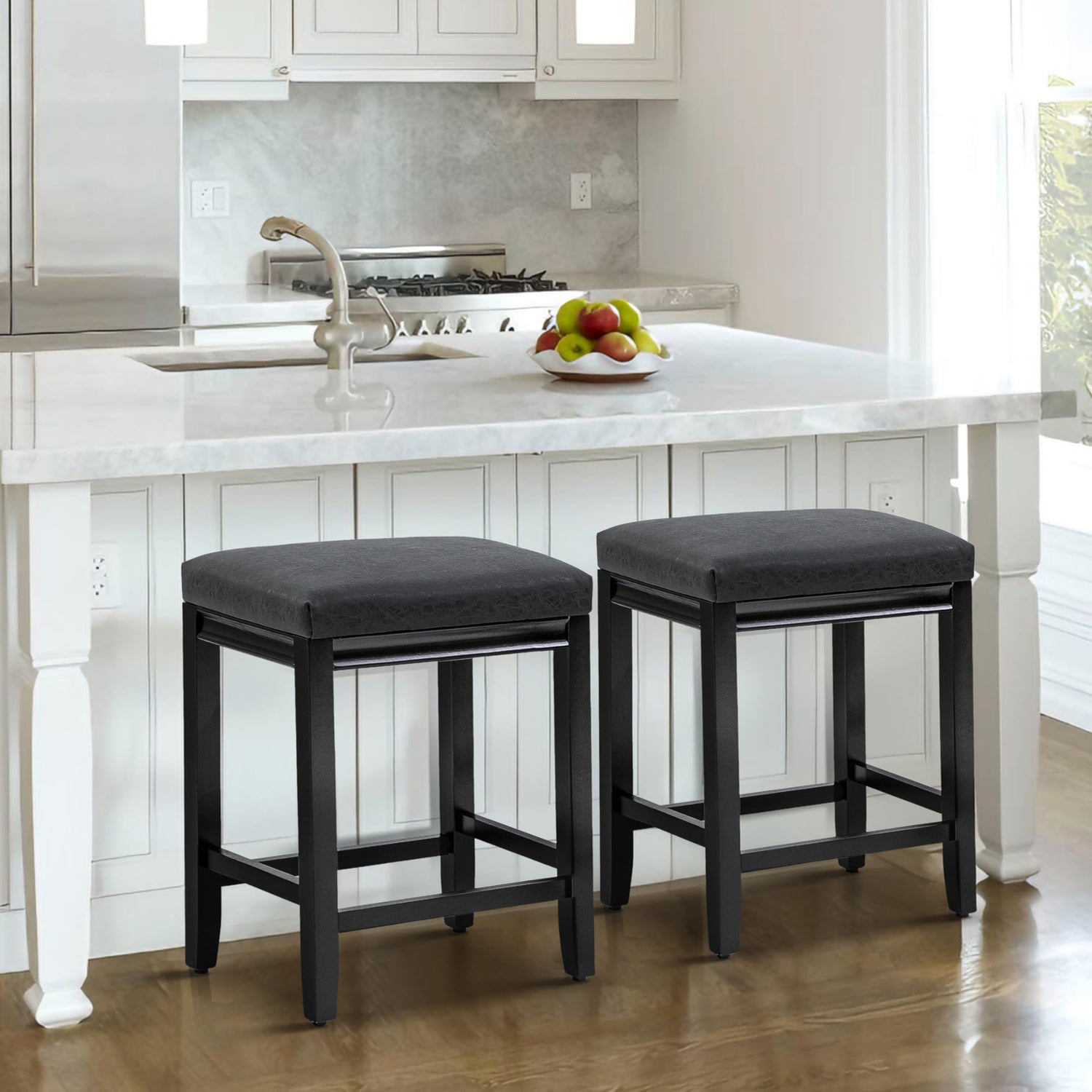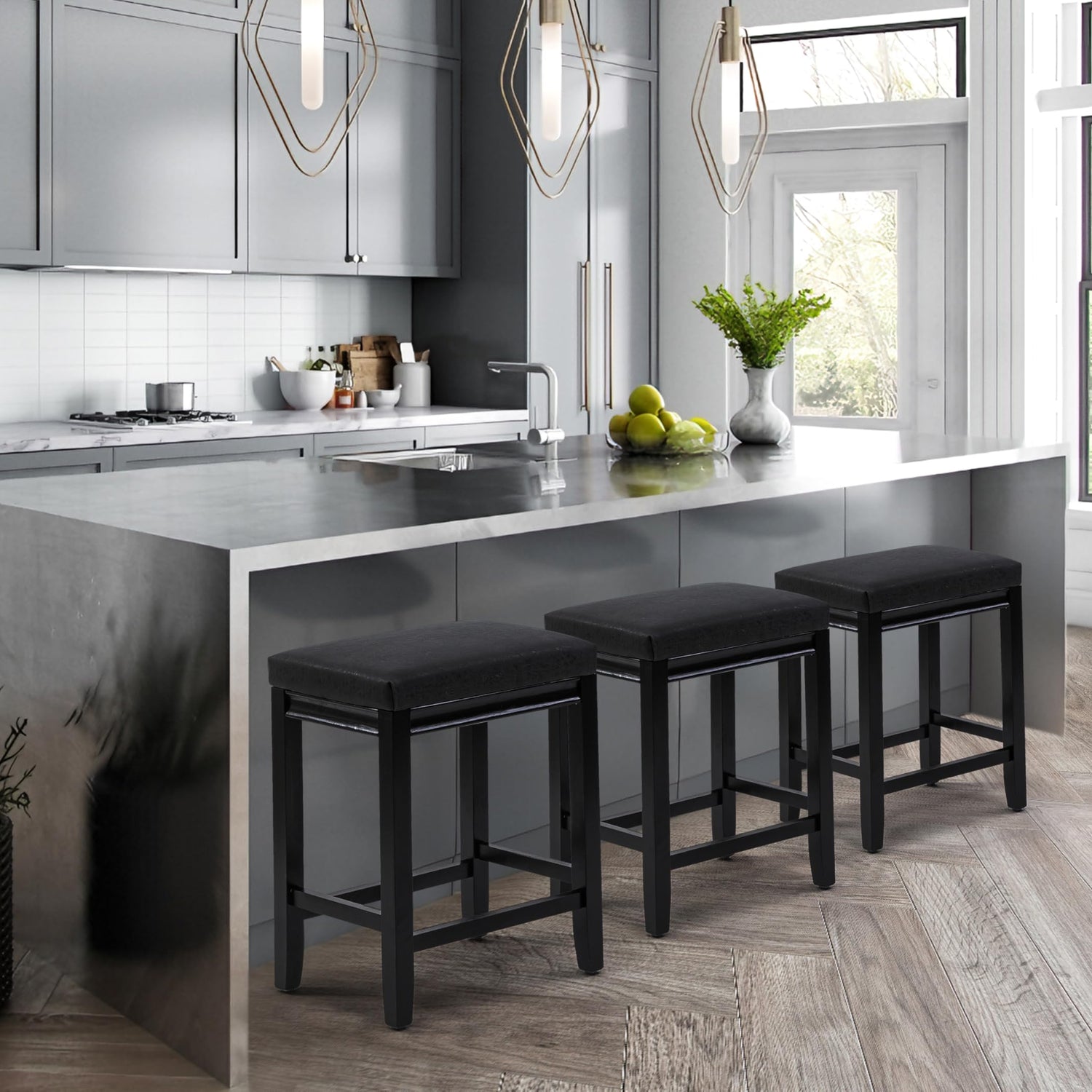RNKSFX Counter Height Black Bar Stools Set of 3 for Kitchen Counter Farmhouse Modern Barstools with Faux Leather Upholstered Backless Seat and Solid Wood Legs 24 inch Bar Chairs