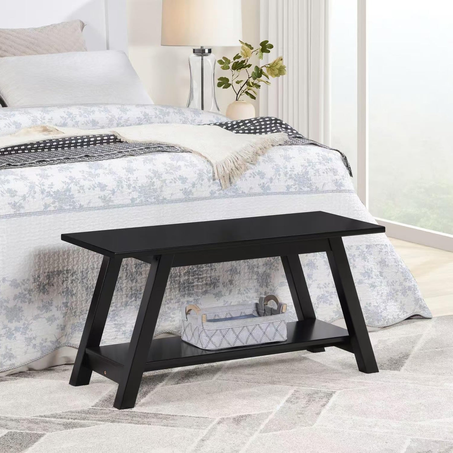 Roundhill Furniture Elyz Solid Wood Bench with Shelf, 36.10-Inch Long, Espresso