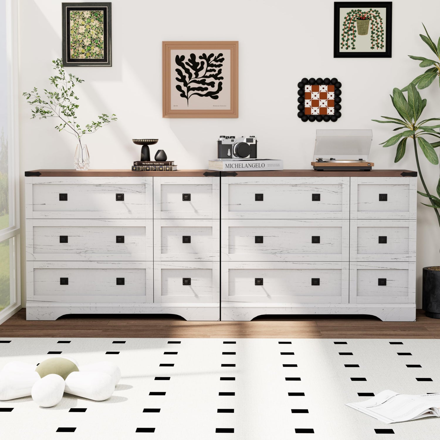 - 【Charming Farmhouse Design】This dresser showcases a contrasting color scheme that combines natural textures with refined rustic brown and classic white finishes. Accented with black metal hardware, it perfectly balances timeless elegance with modern trends. This design adds farmhouse charm and a hint of industrial style, making it a versatile choice for most home decor styles.