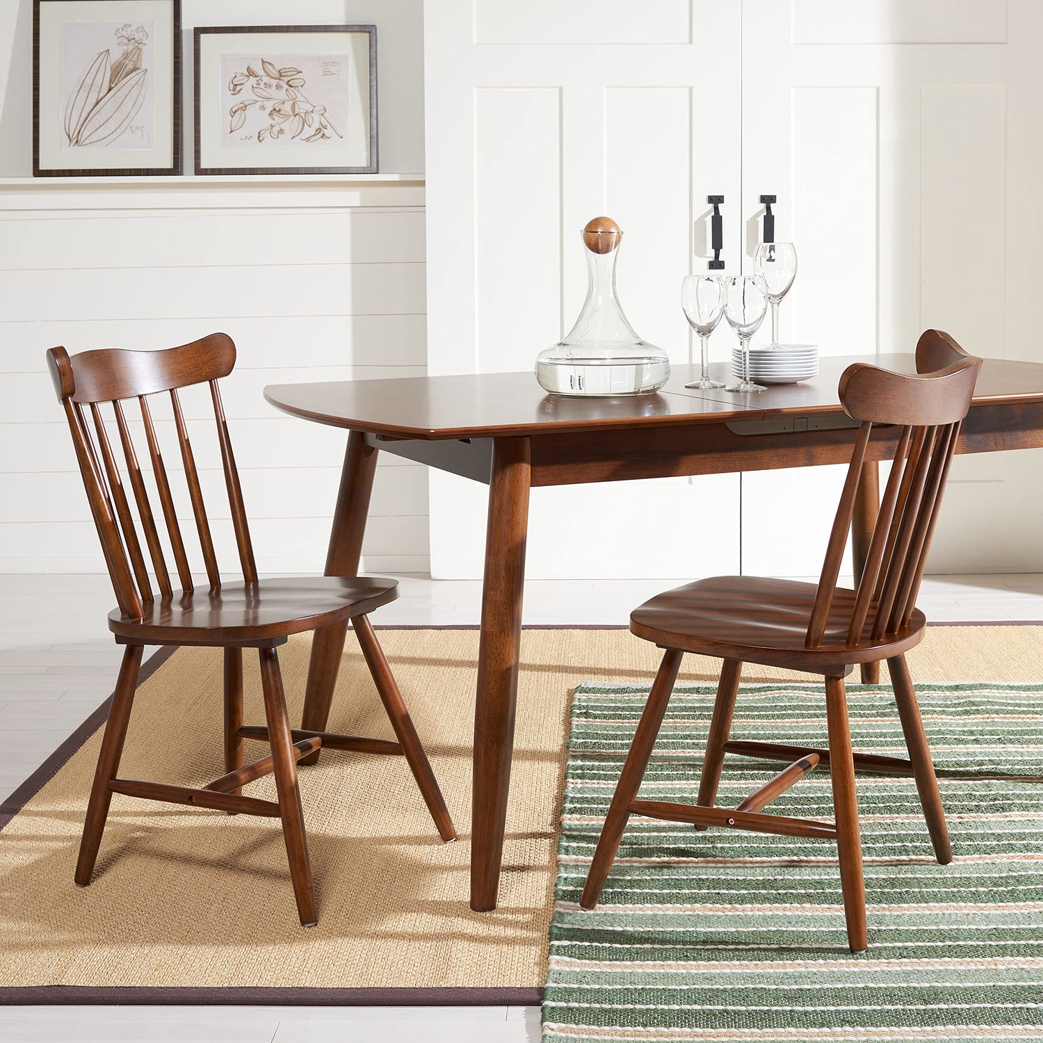 - [DESIGNER DETAILS]: Add a chic touch of style to your home with this comfortable and inviting dining chair; Features a rich walnut finish that beautifully highlights its spindle back and fan silhouette