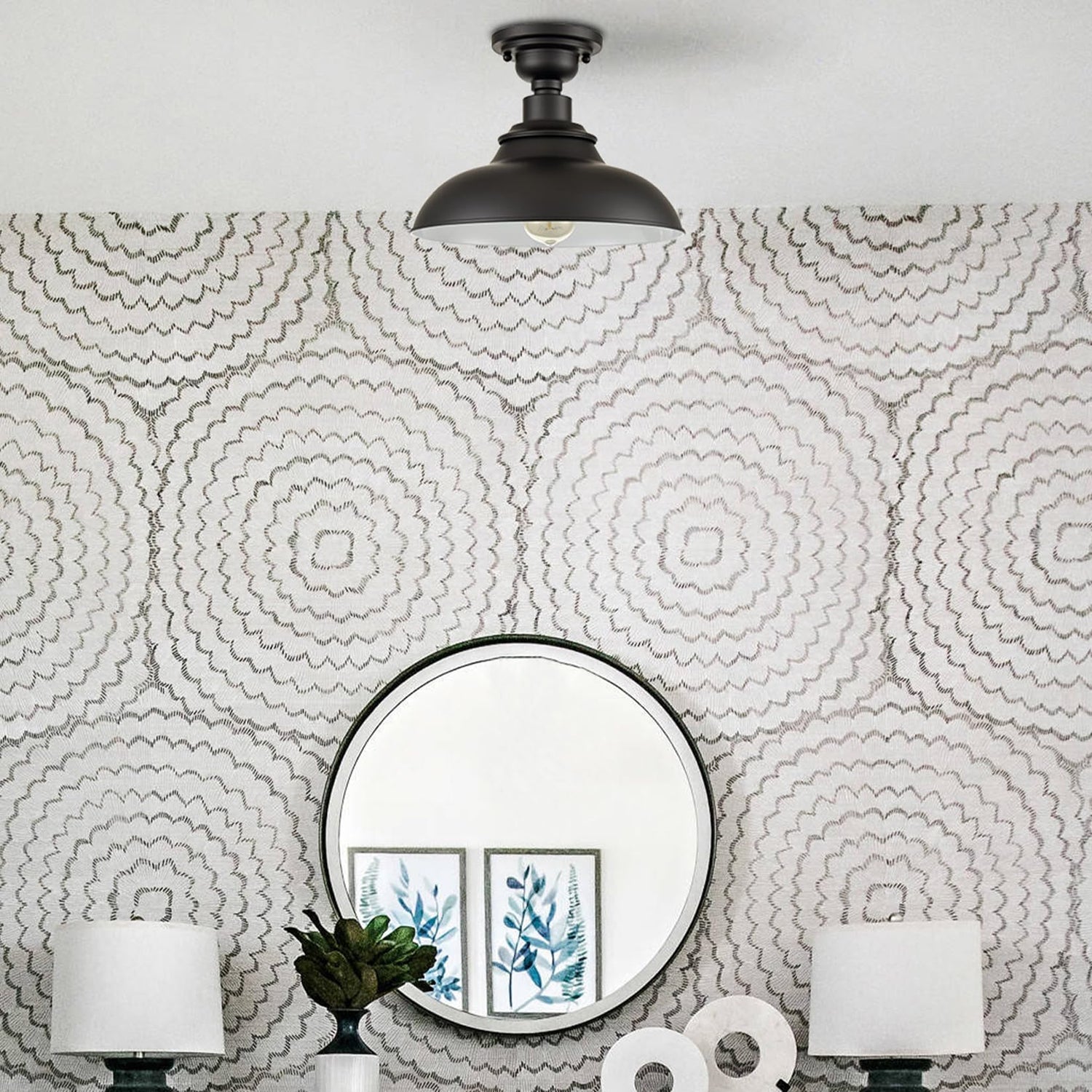 • Wide Application: The black semi flush mount barn light is attractive addition to your home decor with farmhouse style and ideal for porch, bedroom, entryway, foyer, loft, dining room, bathroom, kitchen, living room and more.
