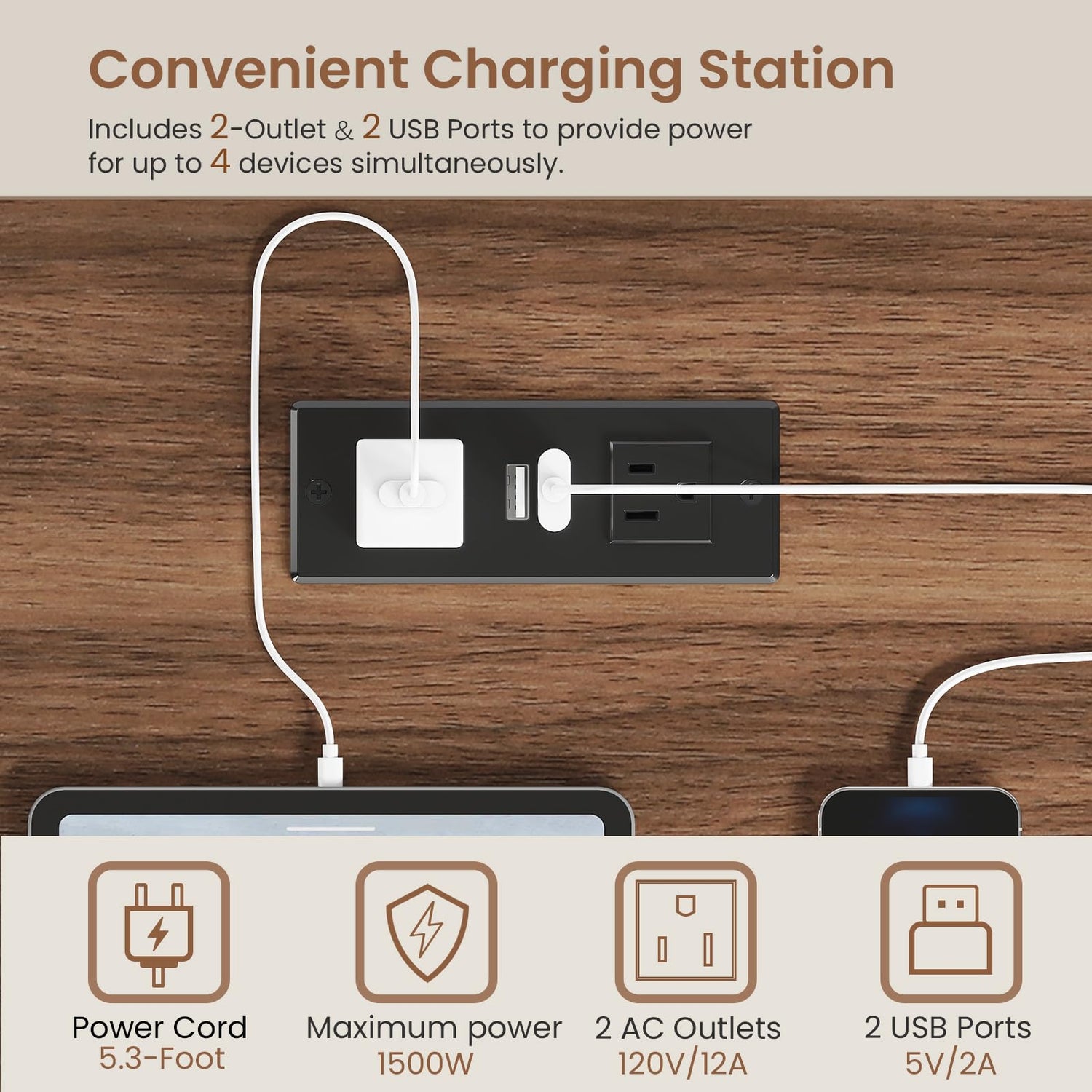 - 【Built in power outlet】This samll computer desk with storage is designed with a built-in power supply, which makes it convenient for you to charge electronic devices in a timely manner whether you are working or studying. It can meet the charging needs of 4 devices at the same time.