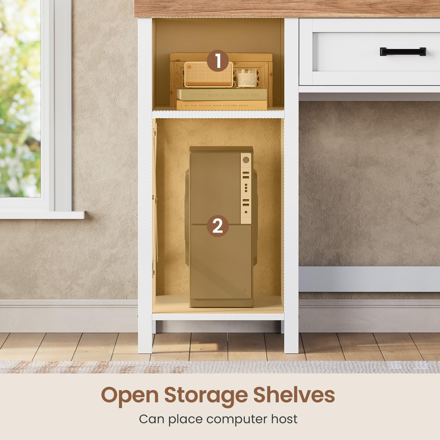 - 【Multi scenario application】his farmhouse small desk can not only be used for office and study, but also as a dressing table in the bedroom. The exquisite table shape and rich storage functions meet your design needs for a dressing table.
