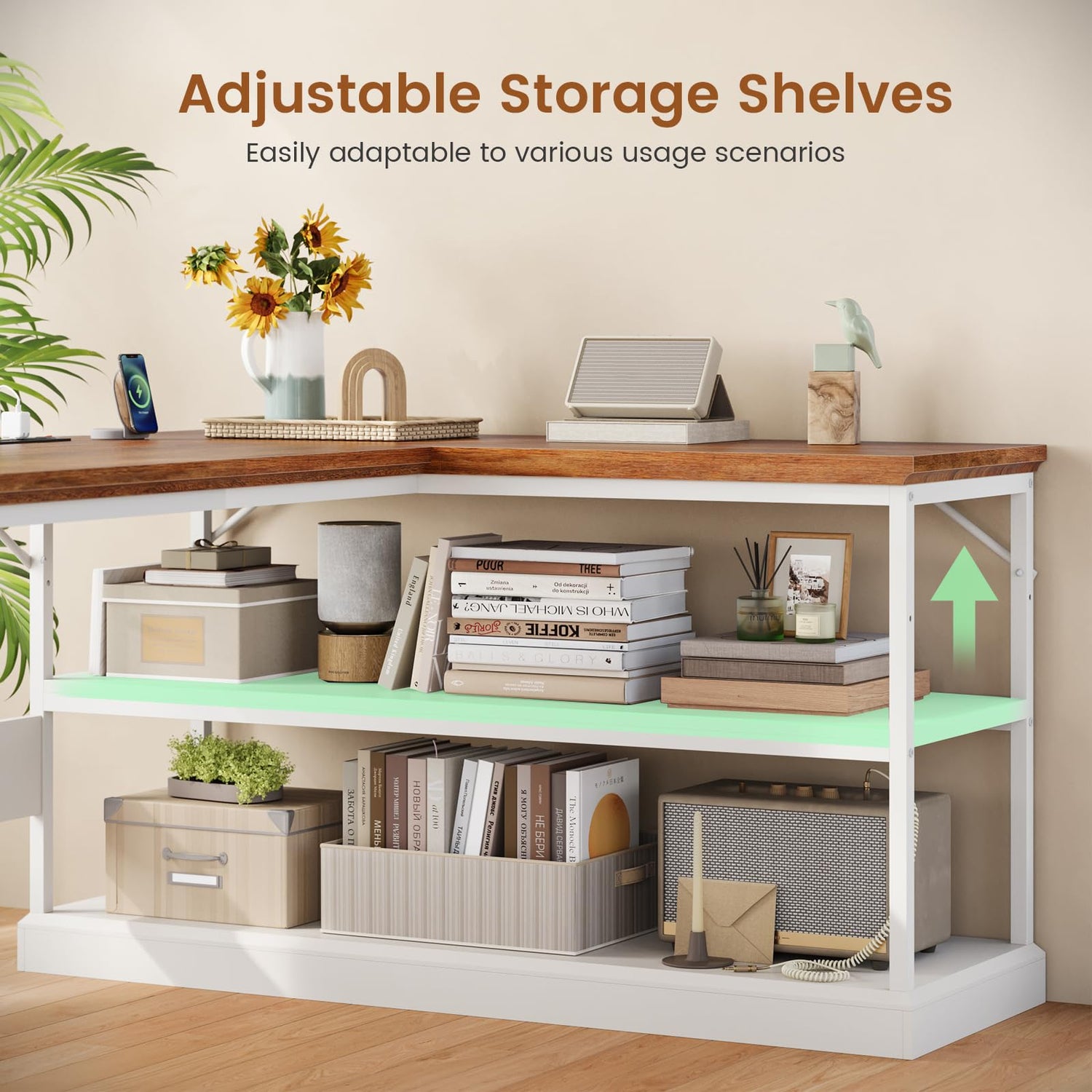 - 【Large Storage Space】The SEDETA L shaped desk features a spacious main desktop (57.87" L × 19.6" D). This farmhouse-style L-shaped office desk offers ample storage, including:1 file drawer (fits Legal/Letter/A4 sizes),2 utility drawers for home/office supplies,Adjustable dual-tier side shelves (ideal for CPU, books, bins, printers, etc.).