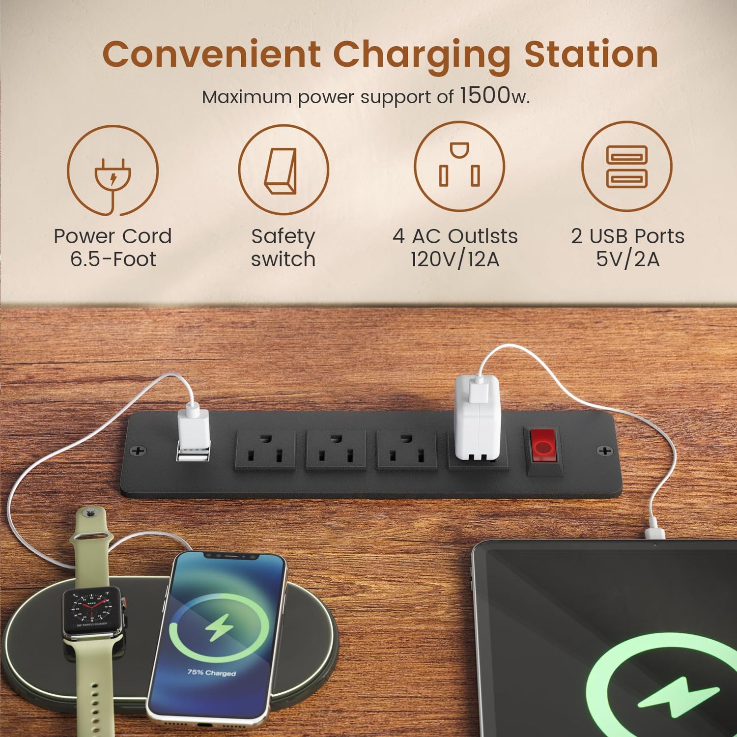 - 【Power Outlets】This computer desk comes equipped with:4 AC power outlets and 2 USB charging ports Conveniently charge your gaming devices, tablets, printers or smartphones. The built-in power switch allows you to safely turn off electricity without unplugging your devices.