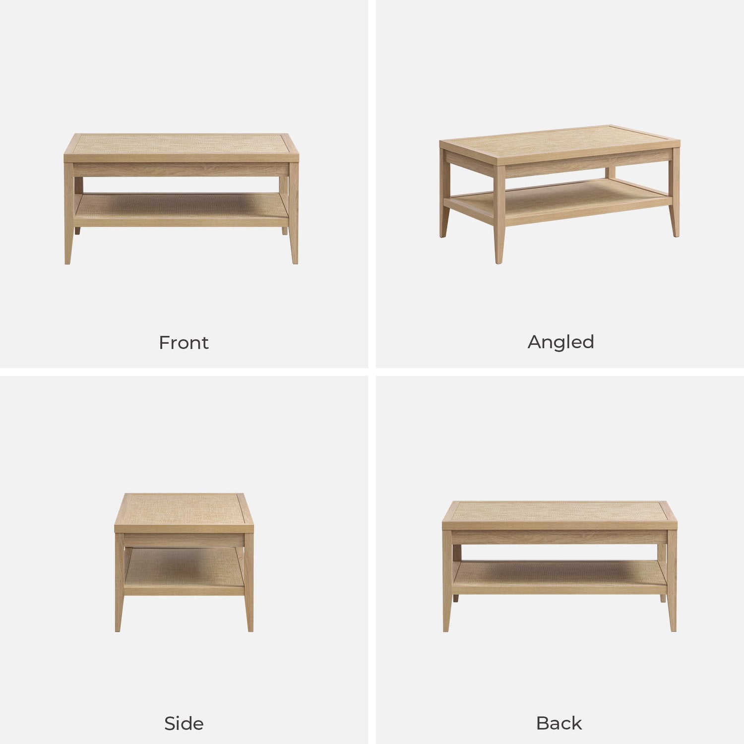 SICOTAS Rattan Coffee Table for Living Room - Boho Rectangular Dining Center Table with 2 -Tiers Rattan Storage Shelf, Farmhouse Accent Table for Living Room, Home Office, Light Oak