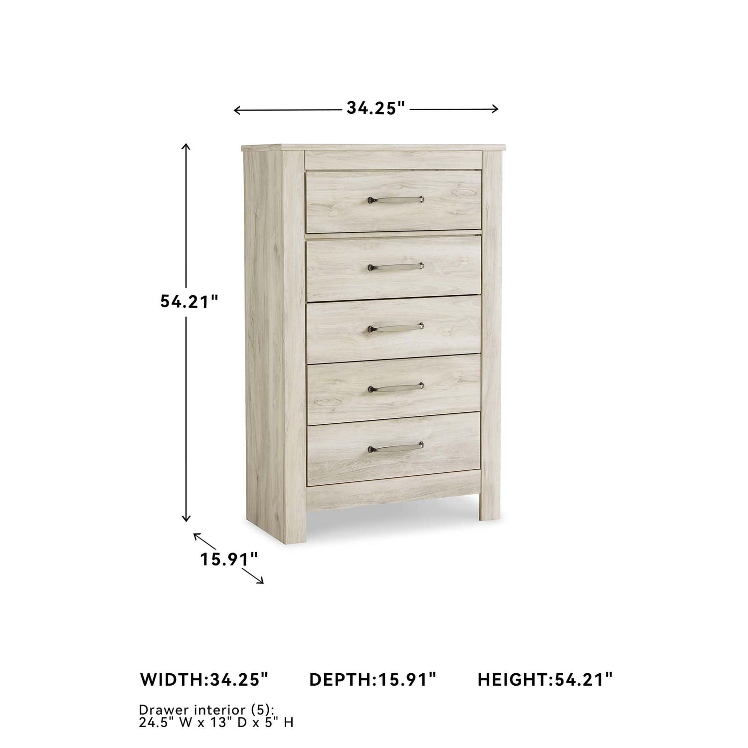 Signature Design by Ashley Bellaby Vintage Farmhouse 5 Drawer Chest of Drawers, Whitewash