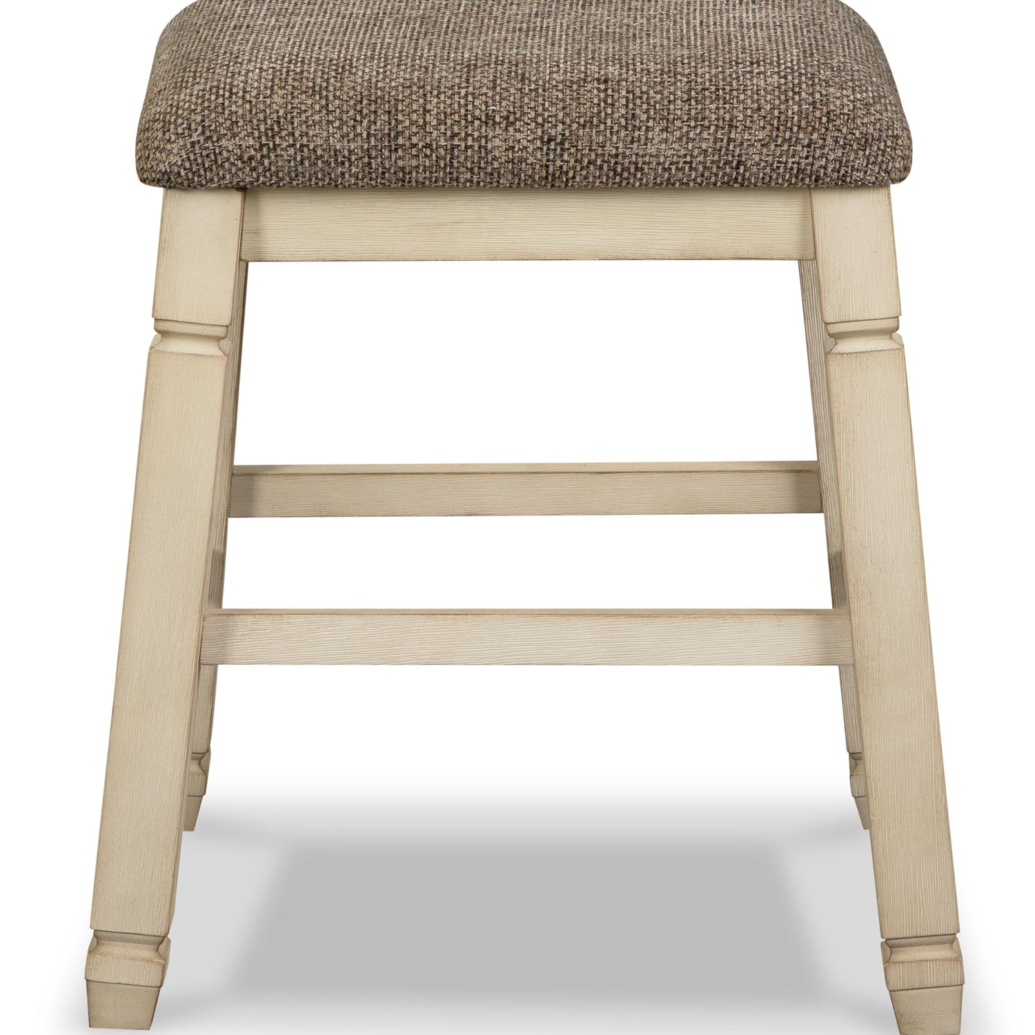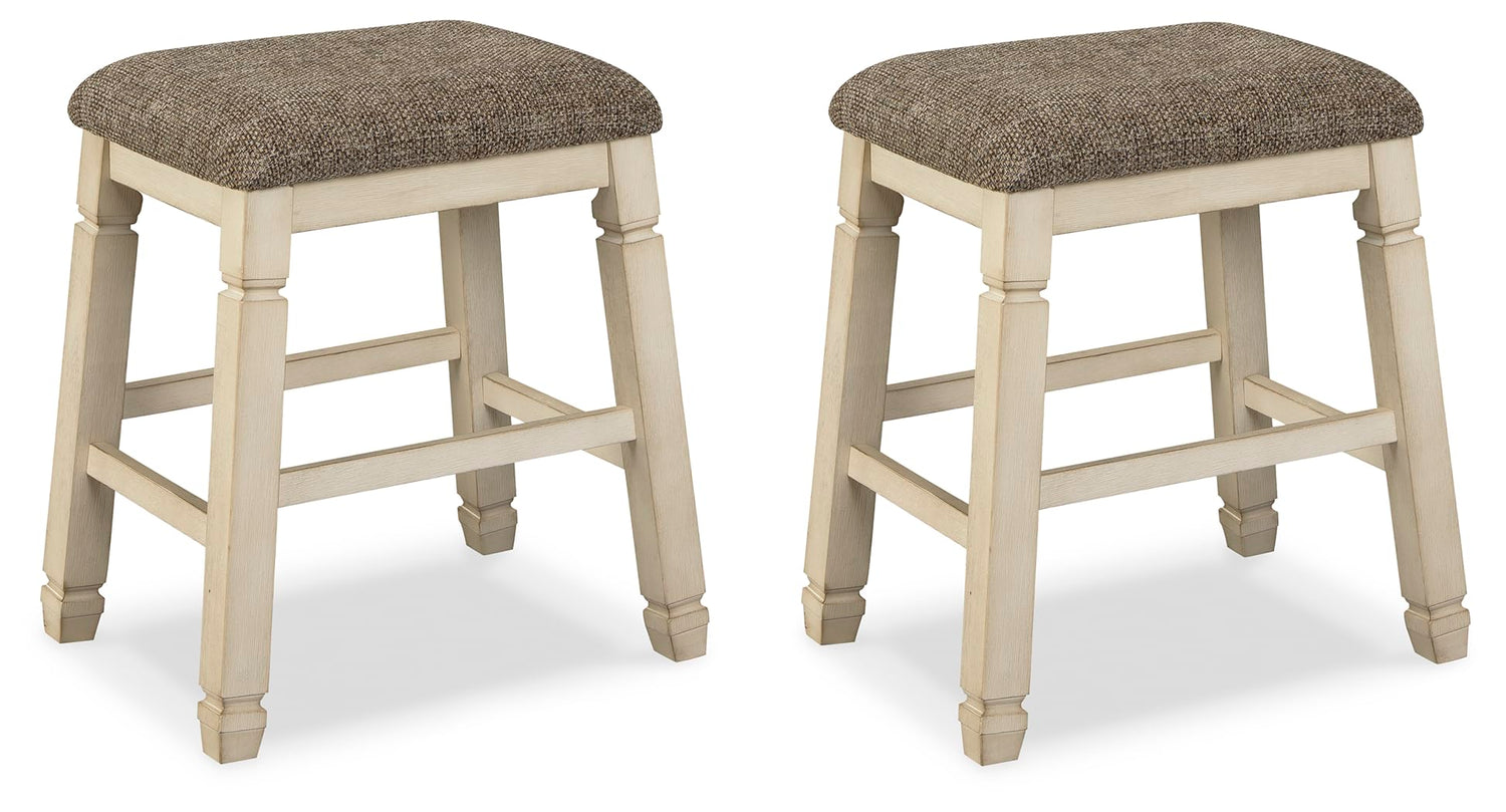 Signature Design by Ashley Bolanburg Farmhouse 24" Counter Height Upholstered Barstool, 2 Count, Whitewash