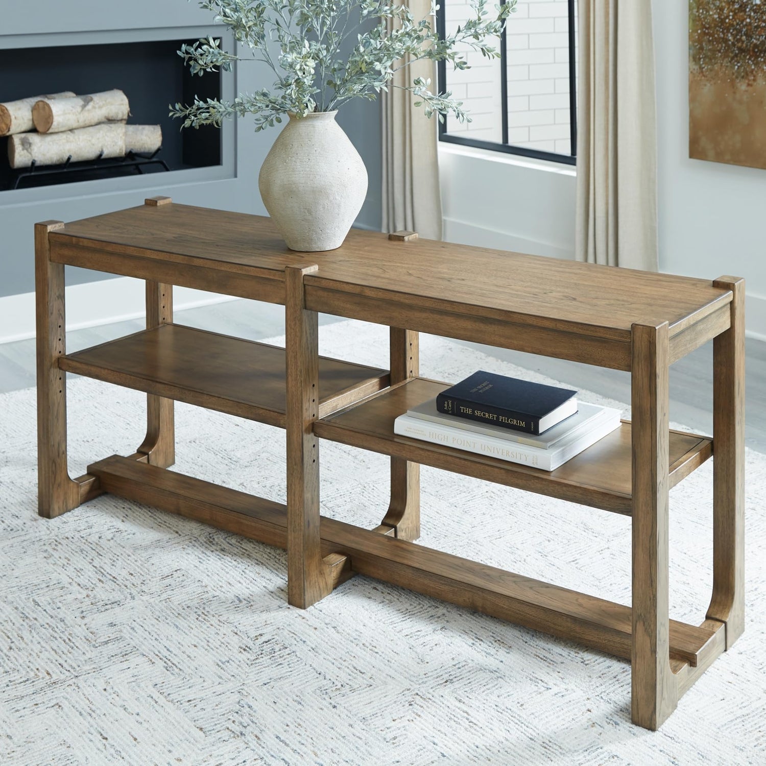Signature Design by Ashley Cabalynn Farmhouse Sofa Table with 2 Adjustable Shelves, Light Brown