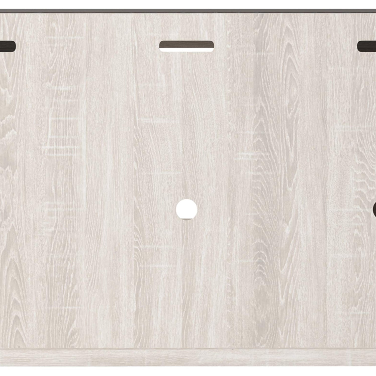 • BEAUTIFUL CRAFTSMANSHIP: Made of decorative laminate and engineered wood this TV stand features a two-tone replicated gray wood top with an antique white base