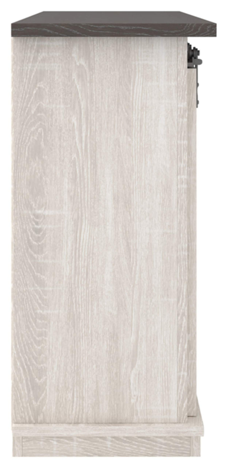 Signature Design by Ashley Dorrinson Farmhouse TV Stand Fits TVs up to 50" with Sliding Barn Doors and Storage Shelves, Whitewash & Gray
