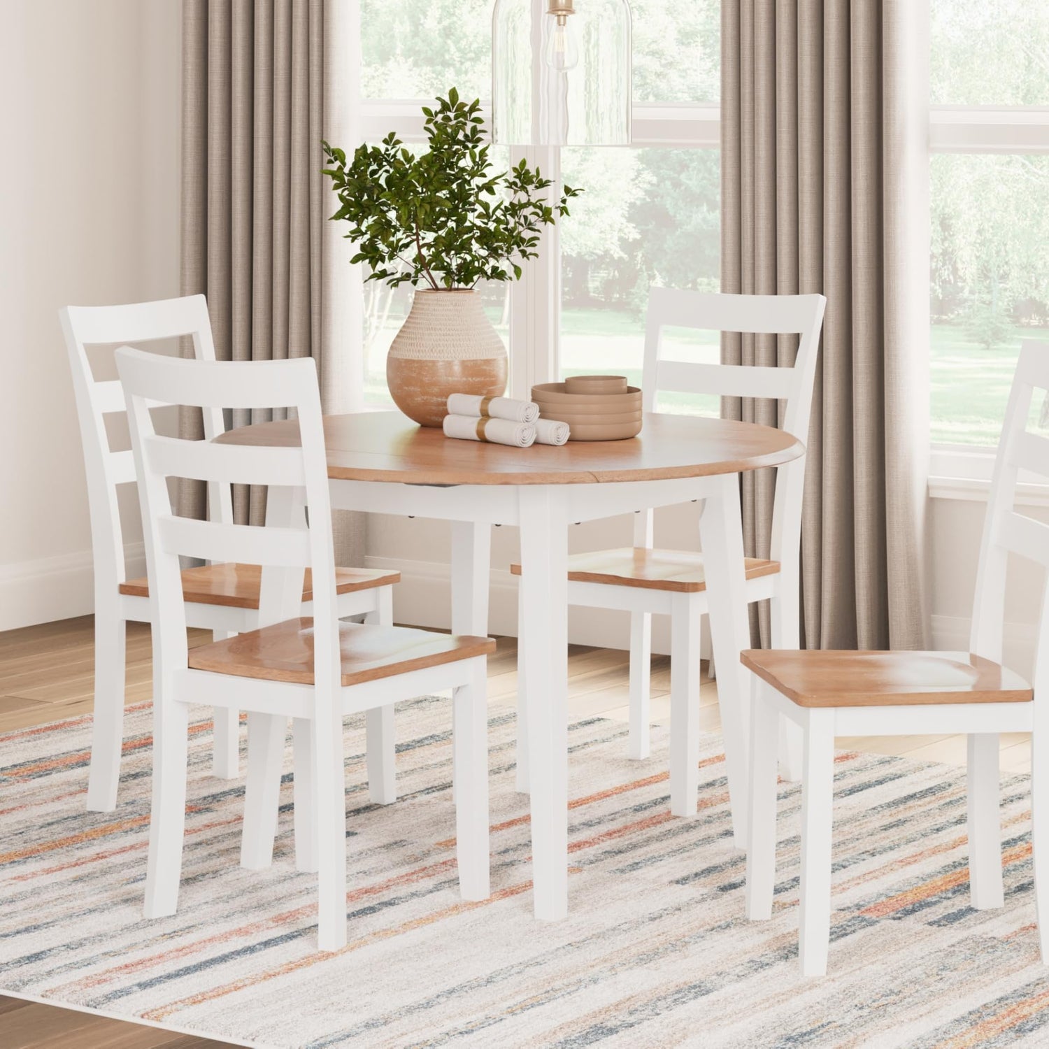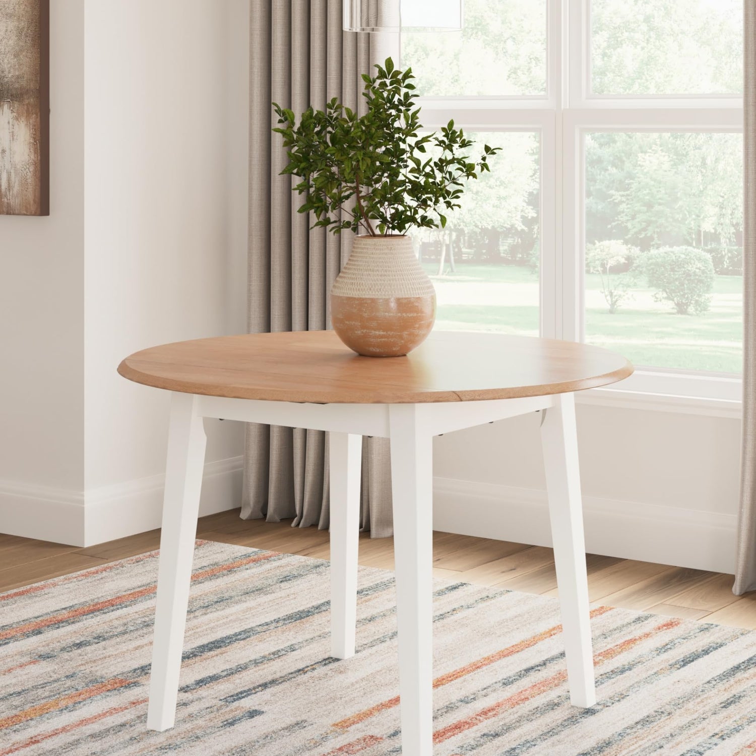Signature Design by Ashley Gesthaven Farmhouse Dining Drop Leaf Table with 4 Legs, Light Brown & White