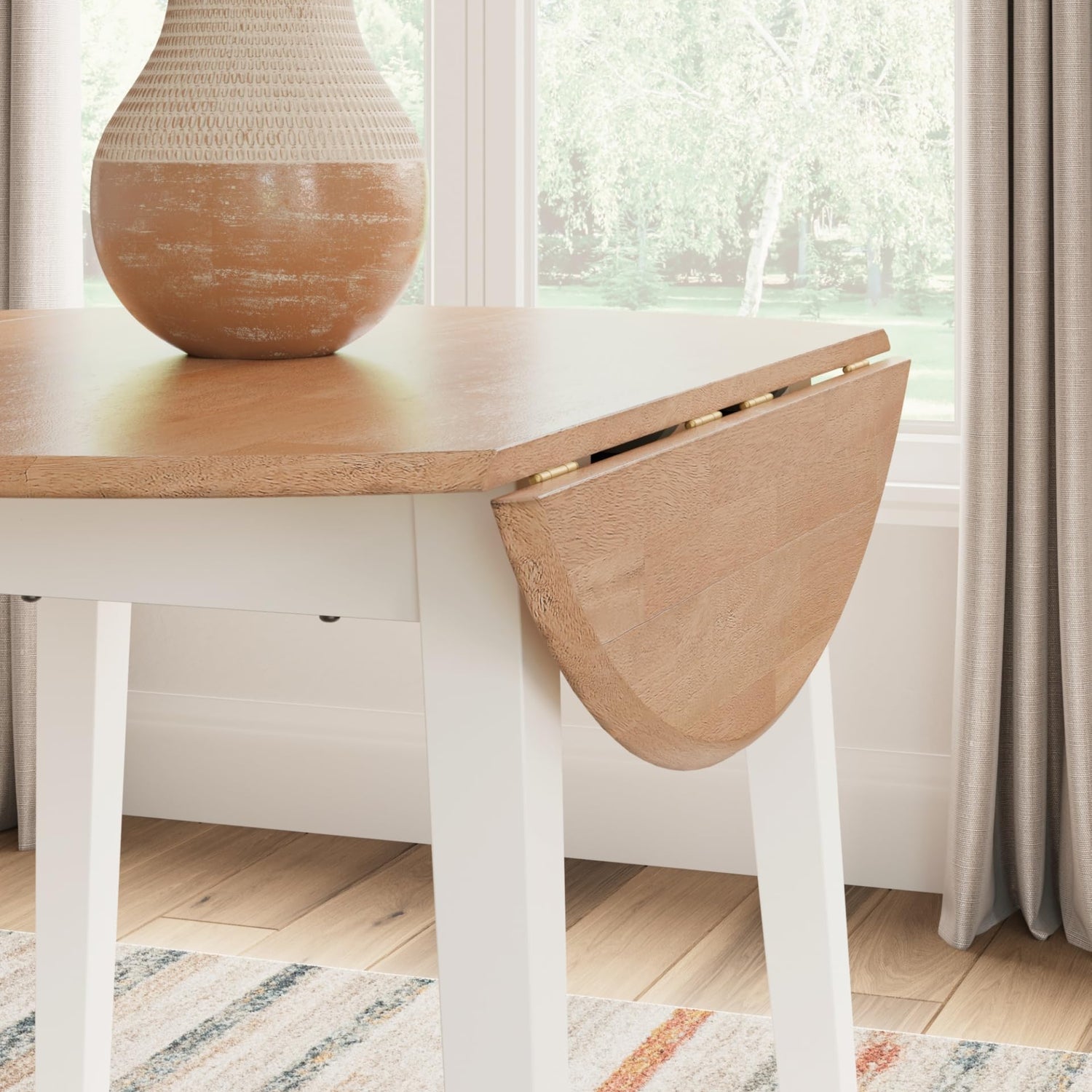 - DROP-LEAF DINING TABLE: Complement your home’s relaxed sensibility with this table. A crisp white hue offers a chic contrast to the natural wood tone. Converts to a larger table with the 2 drop leaves