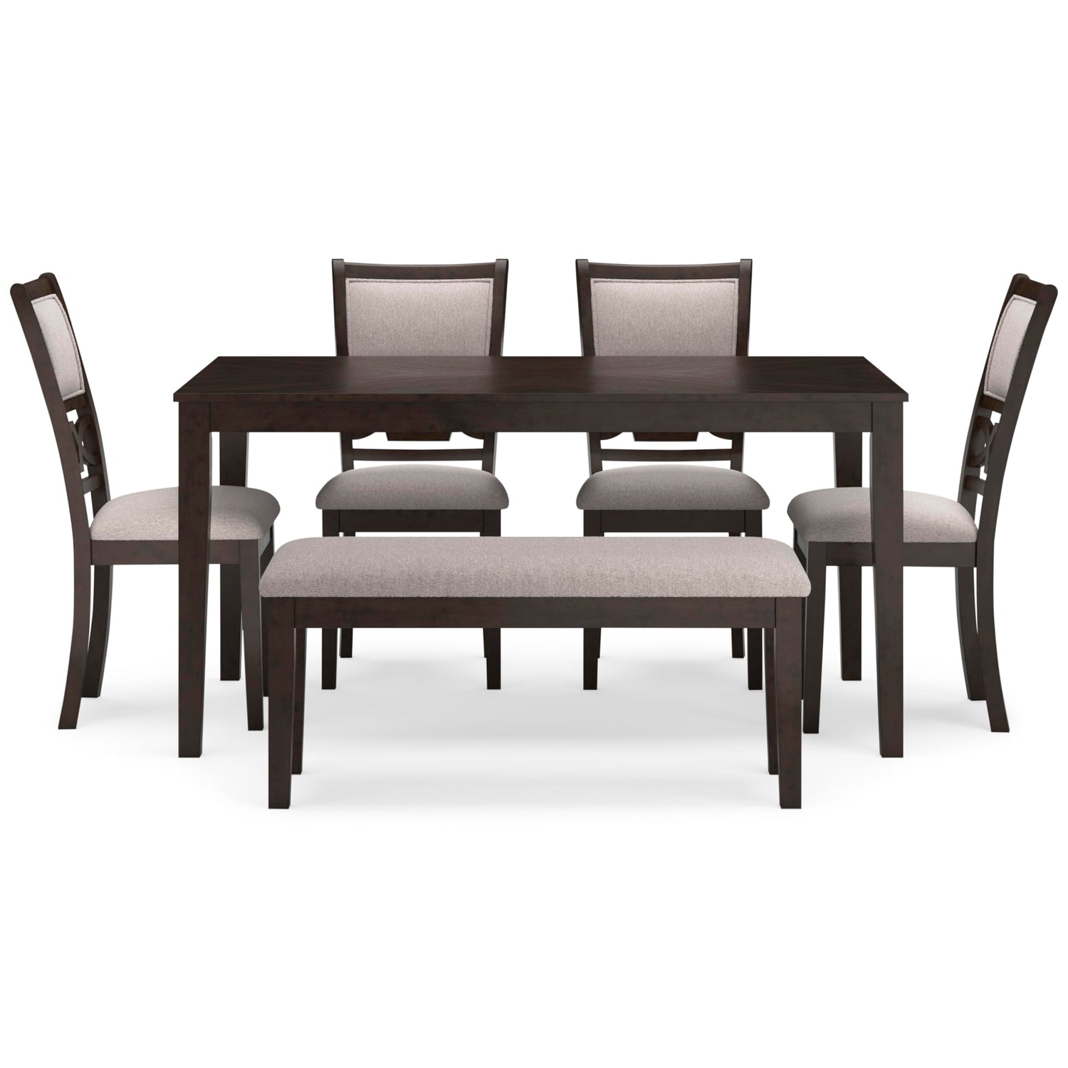 Signature Design by Ashley Langwest Dining Room Table Set, 4 Upholstered Chairs and Bench, Seats 6, Cushioned Seats, Wood, Cherry Brown