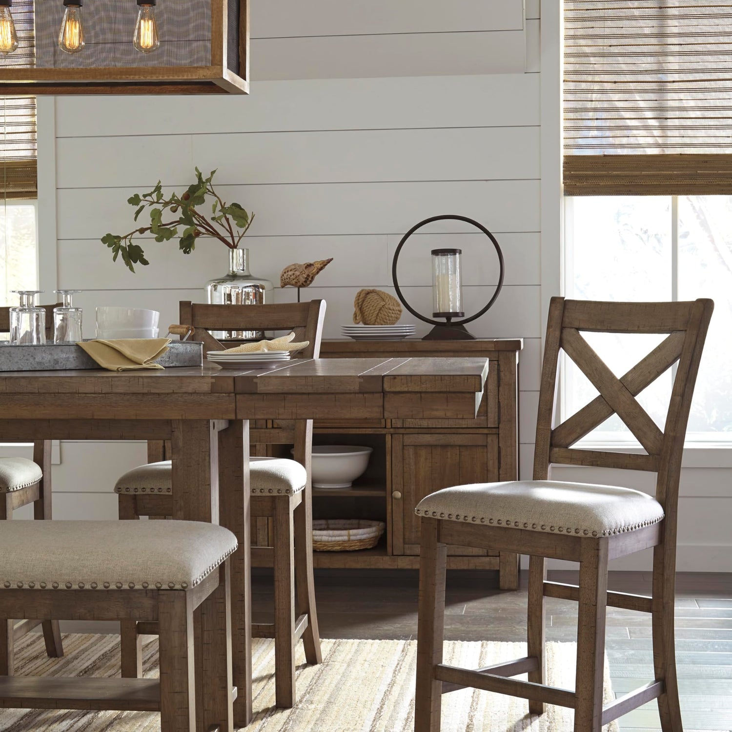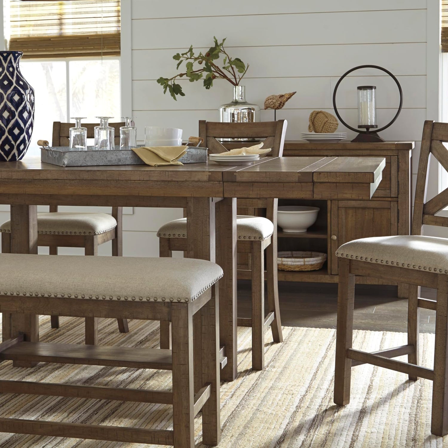 Signature Design by Ashley Moriville Rustic Farmhouse Counter Height Dining Extension Table, Separate Extension Leaves, Seats 8, Wood, 36" W x 86" D x 36" H, Brown