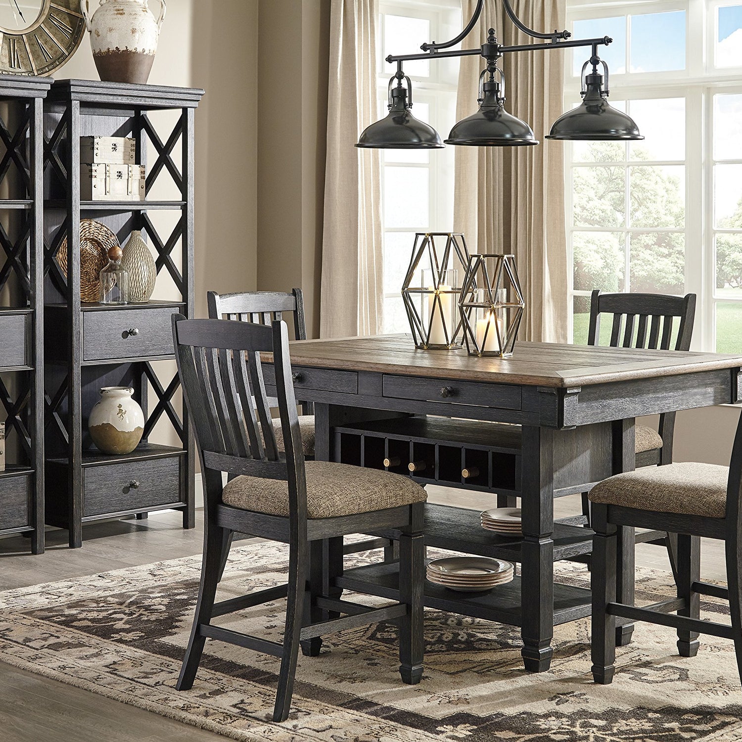 - VERSATILE STYLE: The black finish has plenty of texture, while the X shape sides offer an open concept unique from a hutch or sideboard in your dining area. You'll love it by the table