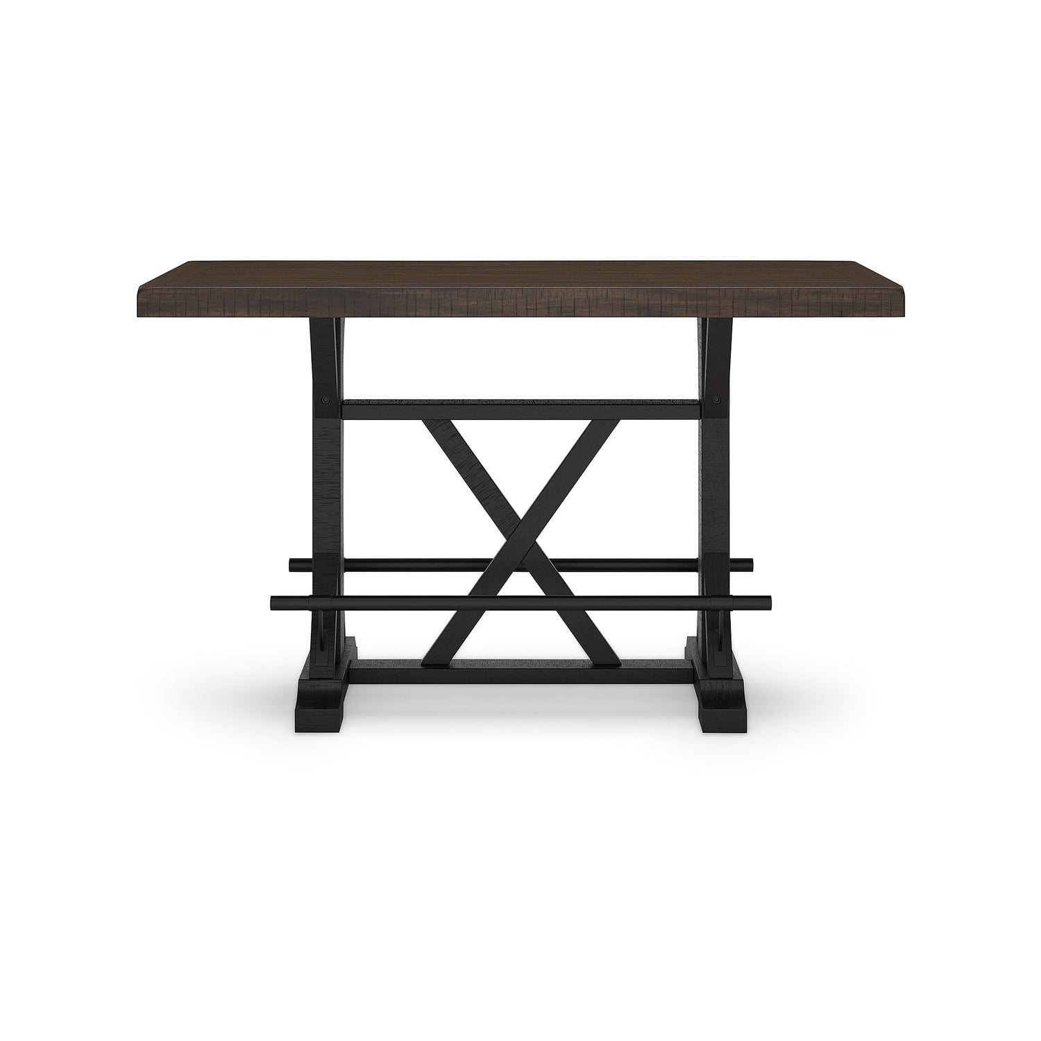 Signature Design by Ashley Valebeck Farmhouse Counter Height Dining Table with Footrest and Trestle Base, Brown & Black