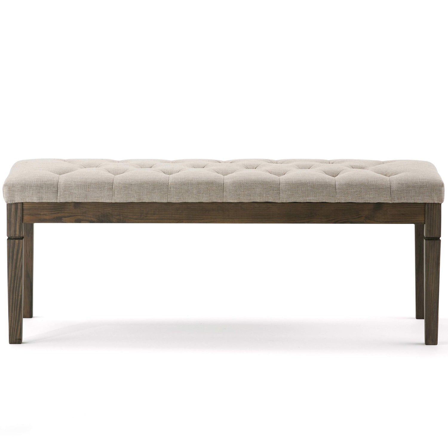 Details: Bring the luxurious French Country feel to your living space with the Waverly Tufted Ottoman Bench. The tufting adds just the right amount of opulence while the simplicity of the notched legs make it the perfect transitional ottoman suitable for any decor. Made with soft, high quality Natural linen look fabric for stylish durability. This classic and elegant ottoman will look striking in the entryway, living room or your bedroom. The Waverly Tufted Ottoman Bench comes in Natural Linen and Slate Grey.; Efforts are made to reproduce accurate colors, variations in color may occur due to computer monitor and photography; At Simpli Home we believe in creating excellent, high quality products made from the finest materials at an affordable price. Every one of our products come with a 1-year warranty and easy returns if you are not satisfied
