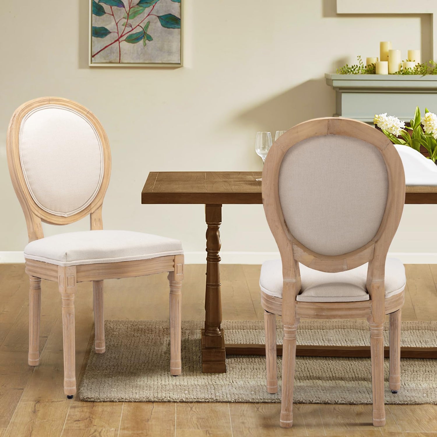 SoarTalent Upholstered Dining Chairs Set of 2 French Country Oval Fabric Back Kitchen Side Chair with Wood Legs for Dining Room, Kitchen, Restaurant(Beige-Fabric)