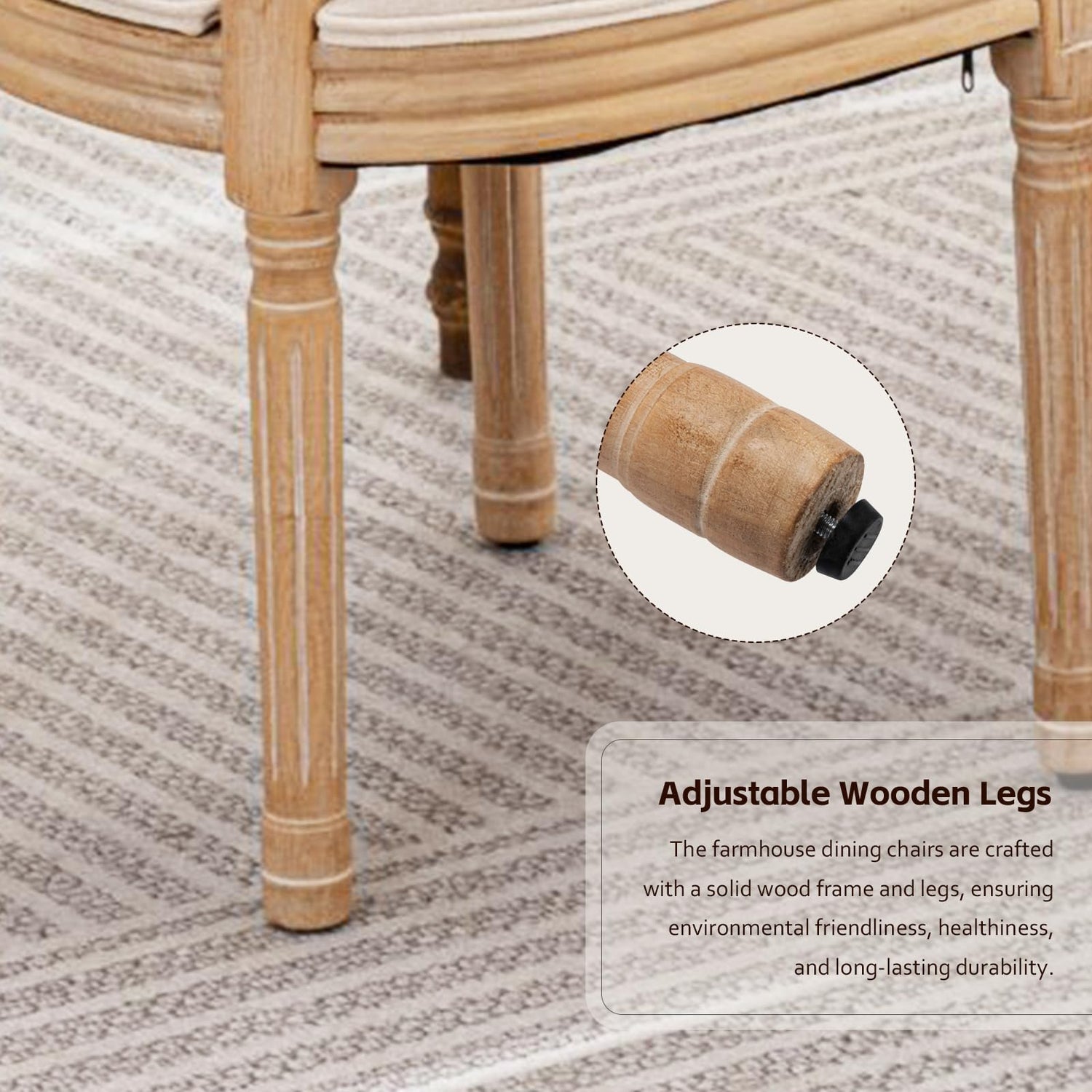 - 🍞【Detailed Leg Design】: Our kitchen-side dining chairs feature carved rubber wood legs. Sturdy rubber wood enhances the durability of dining chairs. Each dining chair is equipped with adjustable leg pads, which on the one hand improves the stability of the chair, and on the other hand, allows the chair to remain at the same level on floors with inconsistent levels.