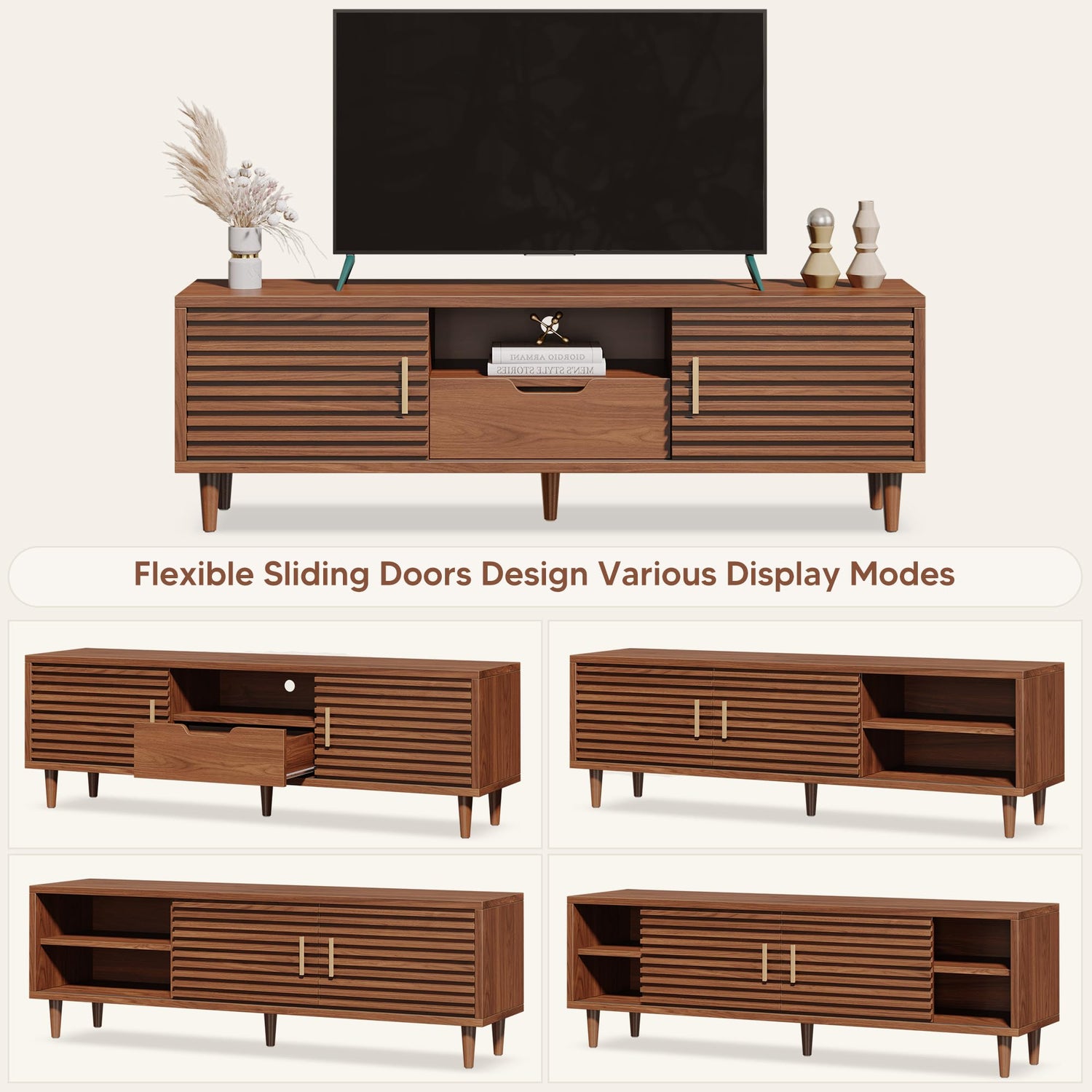 Details: Mid Century Modern TV Stand for 55/60/65 inch TV, Farmhouse TV Stand, Fluted Entertainment Center with Storage, TV and Media Consol for Living Room (Dark Brown, 59")