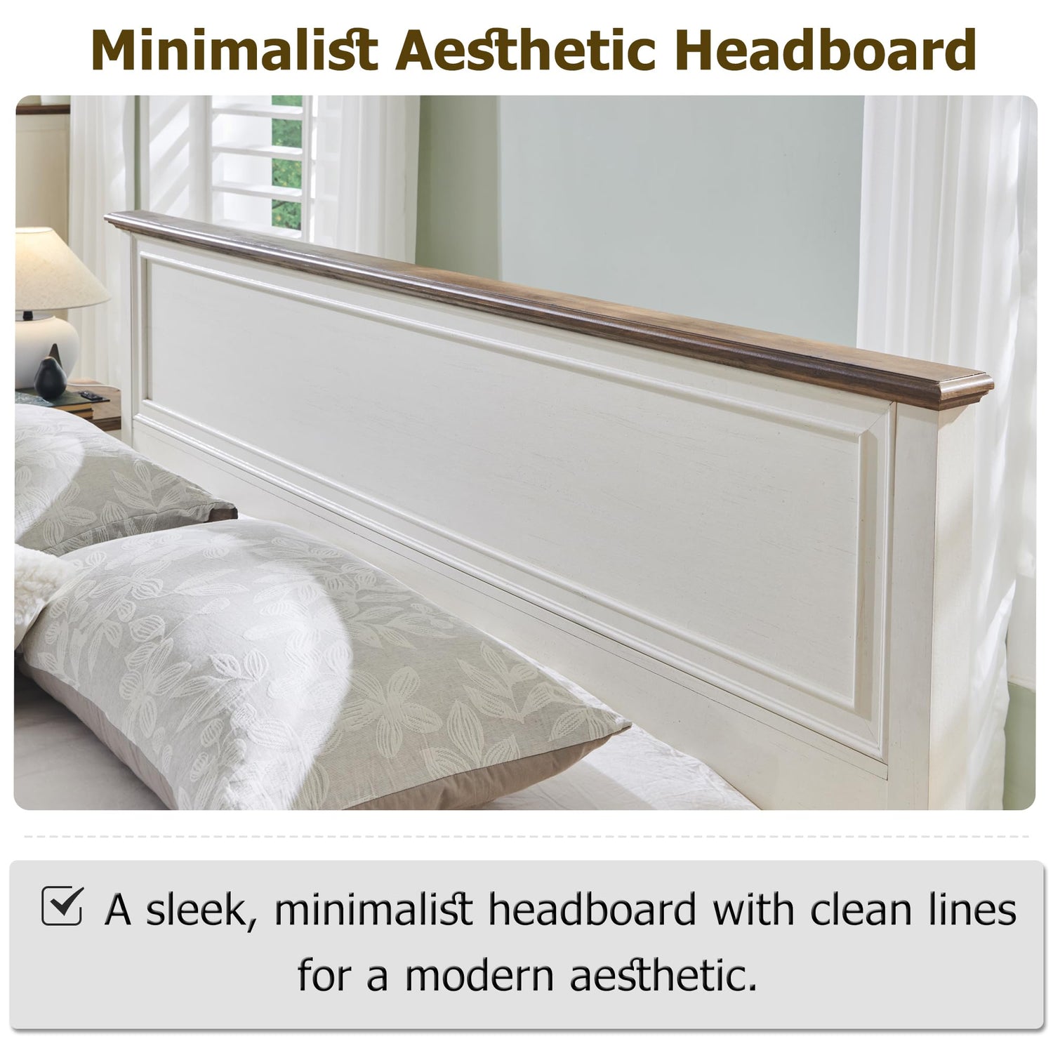 T4TREAM Farmhouse King Bed with Headboard and Storage Bench, Rustic Wood Platform Bed with 80" Storage Chest w/ 4 Large Storage Drawer (Antique White)