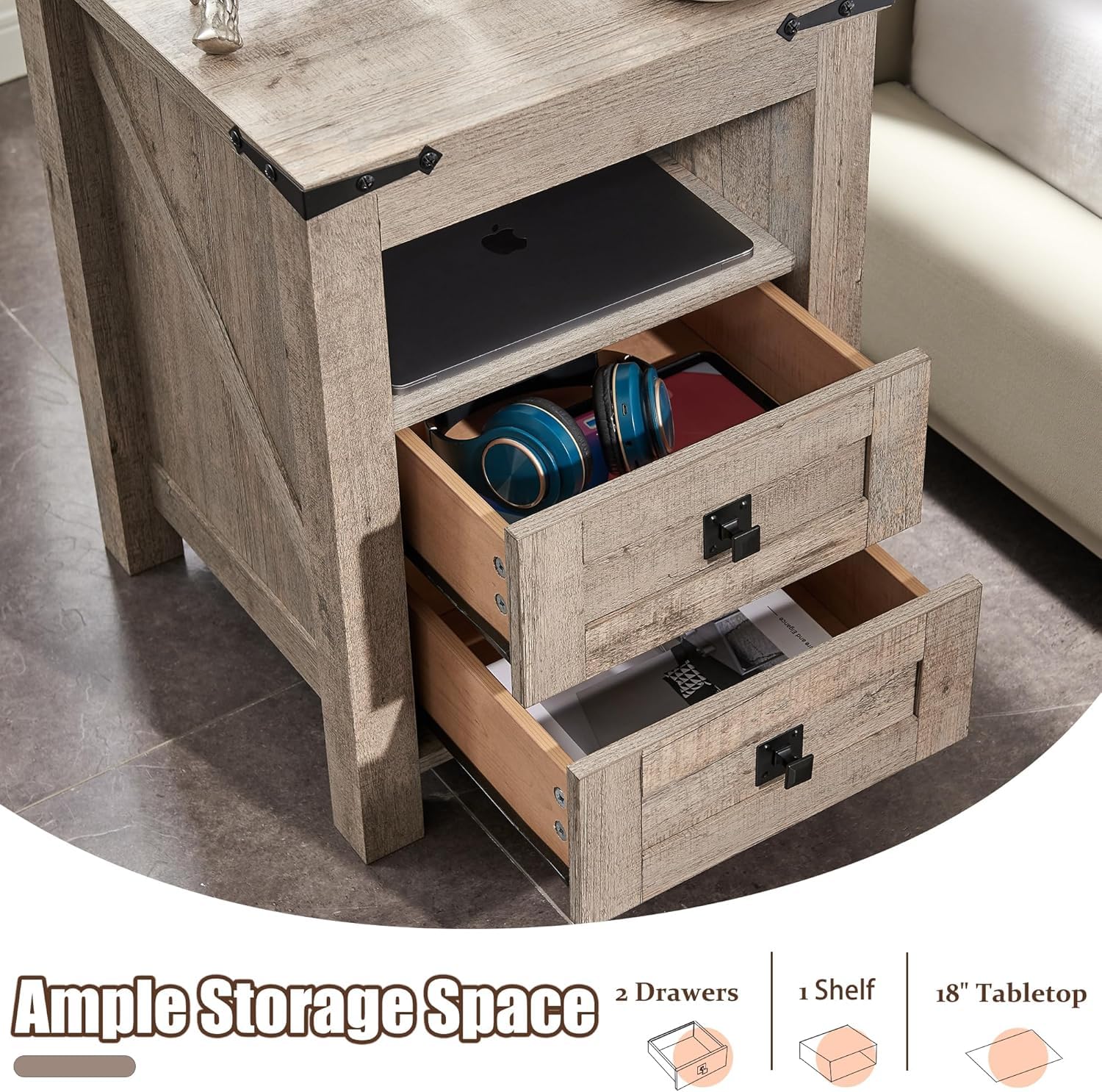 - 【Rustic Farmhouse Style】: This nightstand exudes a charming farmhouse aesthetic with its rustic barn door design, complementing both traditional and contemporary home decors.