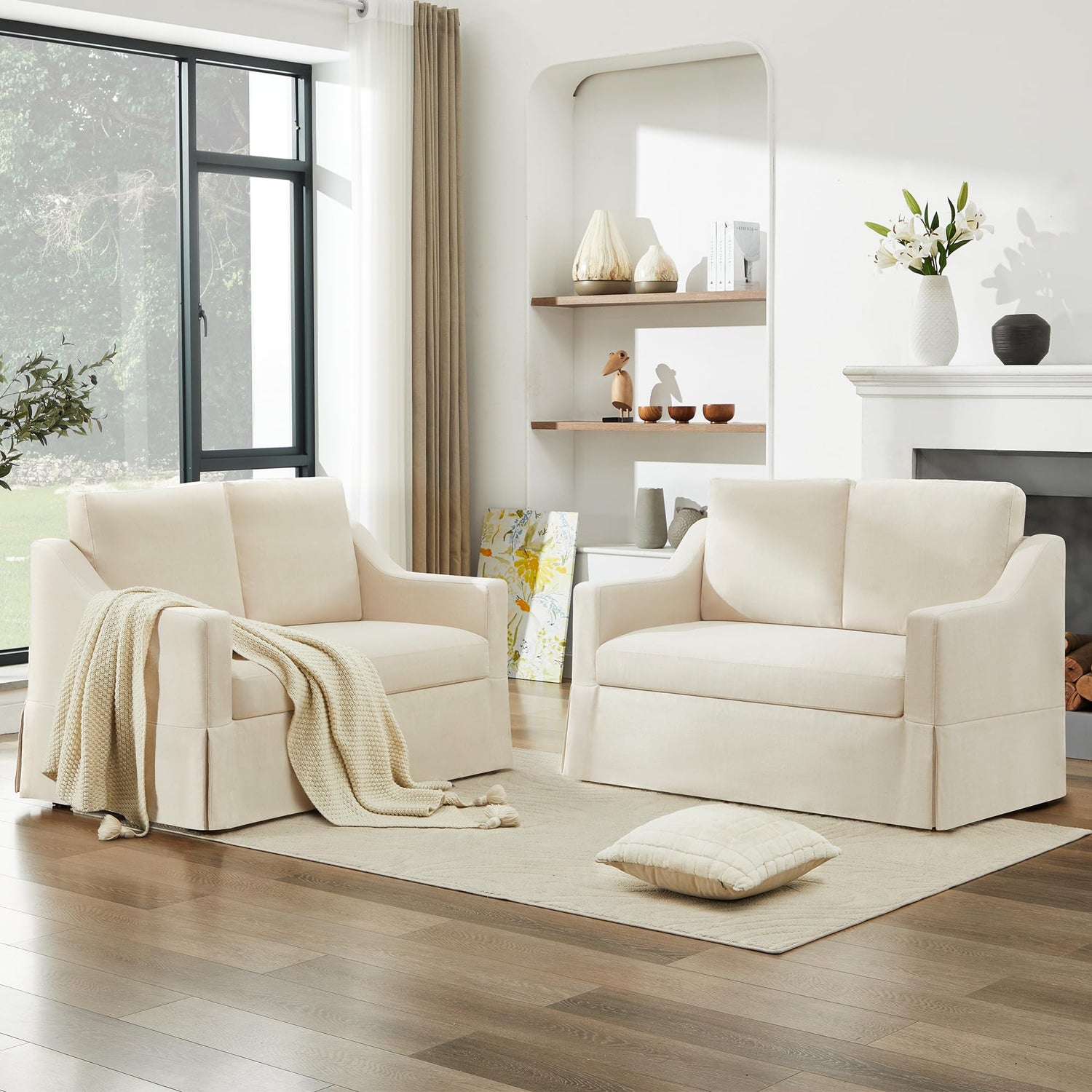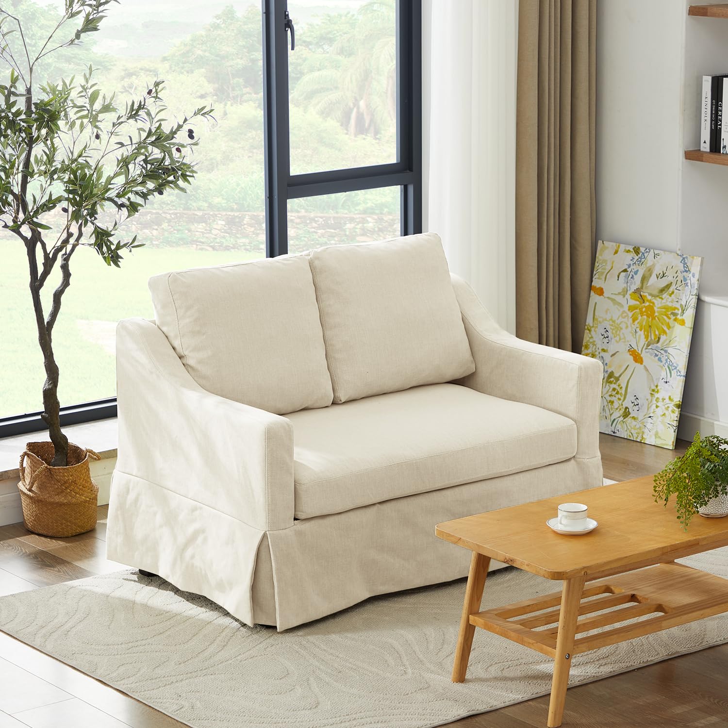 Tbfit 51" Loveseat Couch, Slipcovered Sofa, Small Sofas with Removable Cover, Pocket Spring Cushion, Mini Couches, Living Room Furniture for Home, Apartment, Farmhouse, Beige