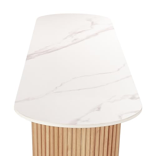 • ◣Mid Century Modern Console Table◥ - Showcase your mid-century modern style with our exquisite wooden console table featuring a marble top. The vertical fluted design on the wooden legs adds a touch of elegance to any space.