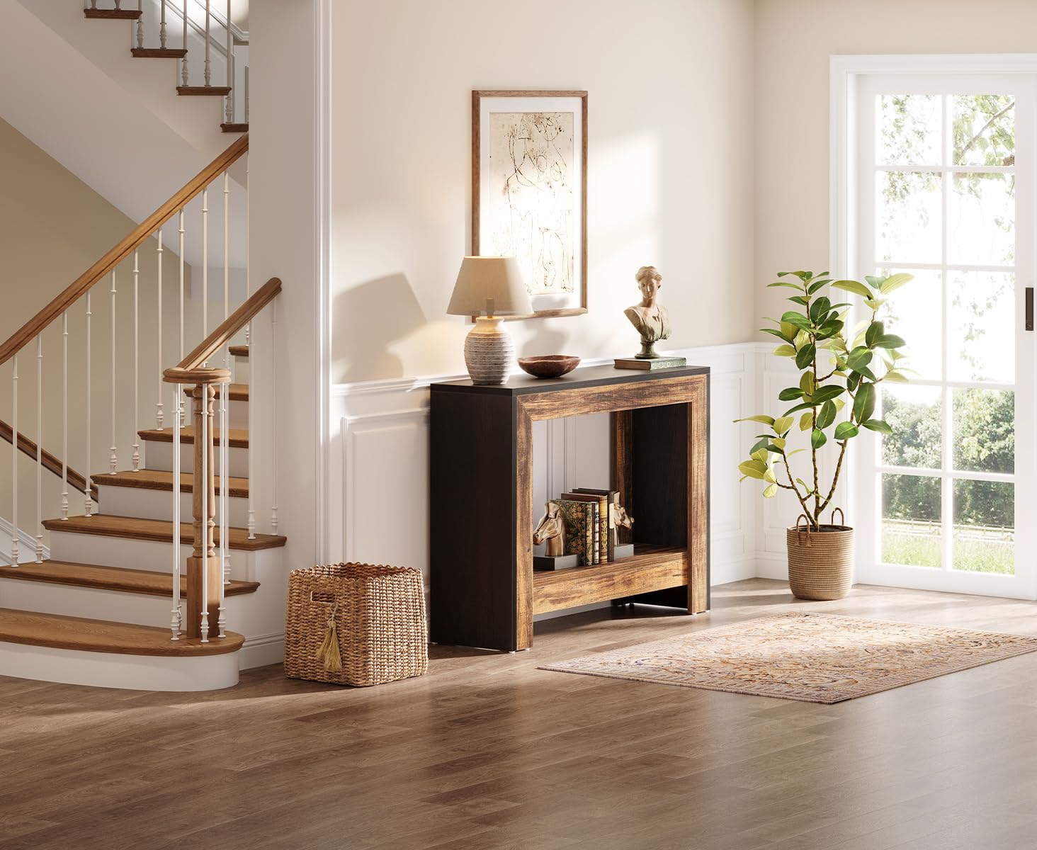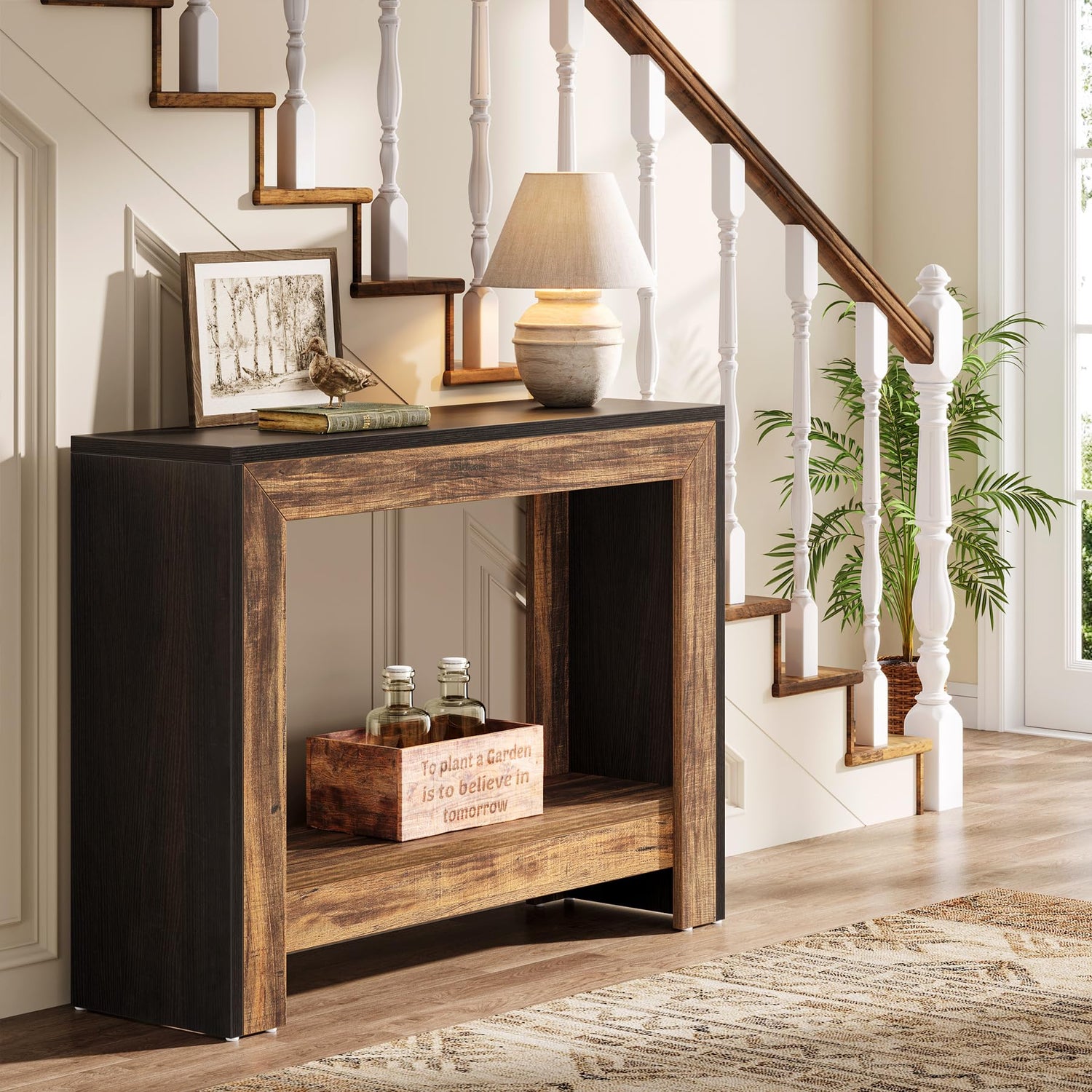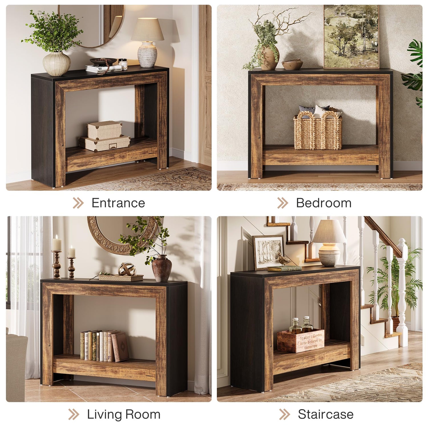 • Rustic Meets Modern: This Tribesigns black sofa table isn’t just beautiful—crafted with a rich black finish and warm brown accents, this console table exudes classic farmhouse style while seamlessly blending with any decor