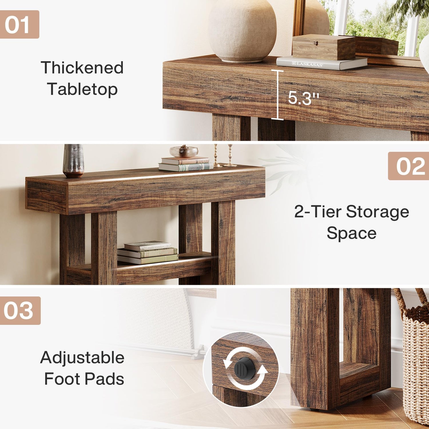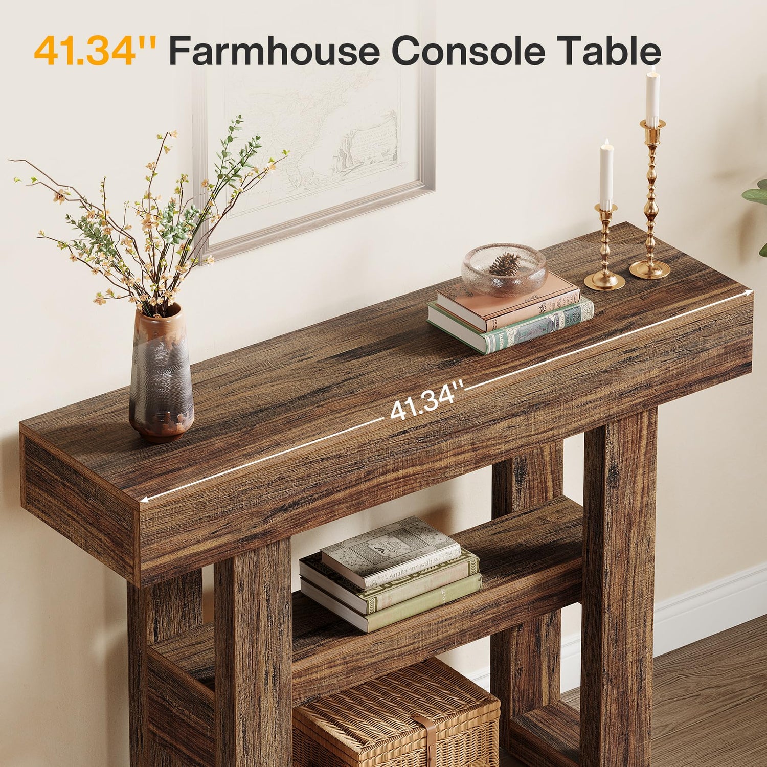 Tribesigns 41.34-Inch Farmhouse Console Table, 2-Tier Narrow Sofa Table Behind The Couch, Entryway Furniture with Storage Shelves for Hallway Foyer Living Room, Rustic Brown