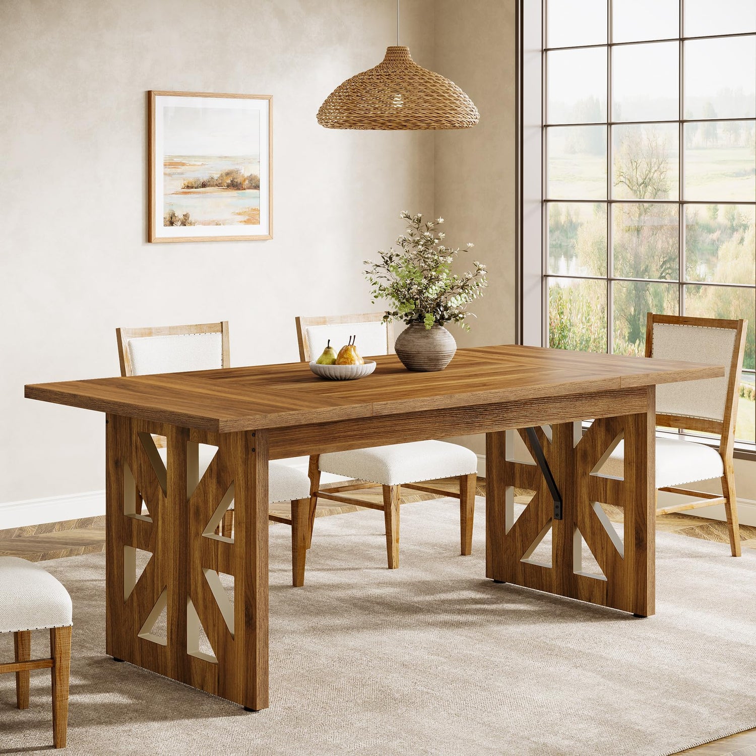 • Classic Farmhouse Style: Our Tribesigns rectangular dining table blends clean-lined simplicity with warm brown wood grain charm. A versatile centerpiece for farmhouse, contemporary, or eclectic spaces