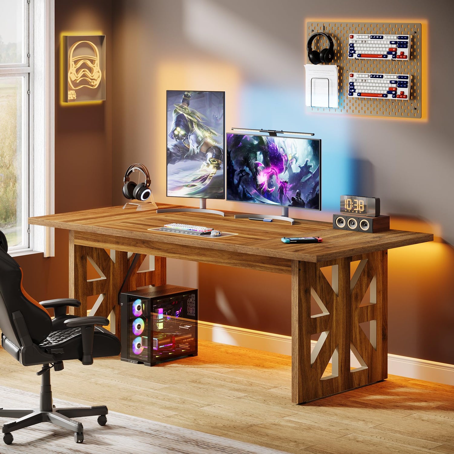 - Simple & Practical: Featuring clean lines and a classic dual-pedestal design with a warm brown finish, our Tribesigns computer desk enhances both your home office aesthetics and work productivity