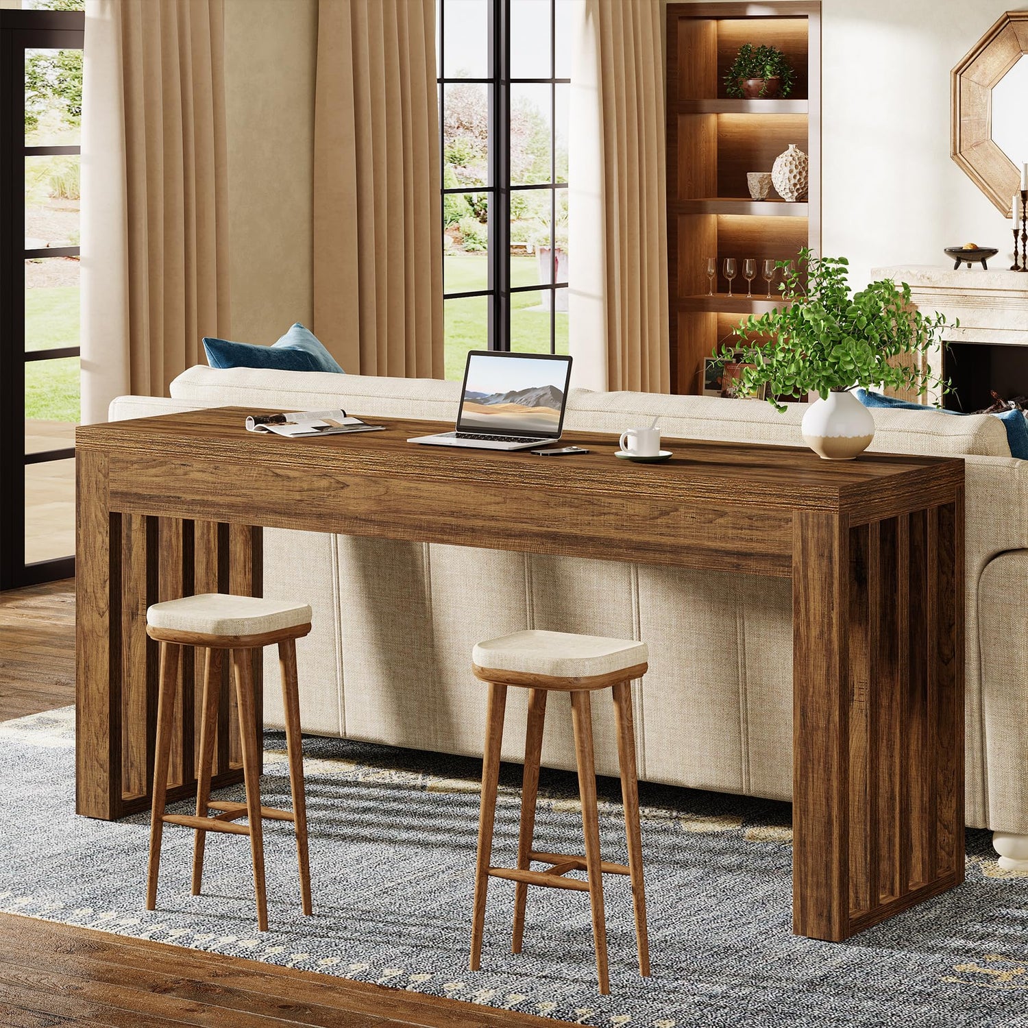Tribesigns 63-inch Bar Table, Farmhouse Counter Height Pub Dining Table, Rectangular Kitchen Bar Height Table for Dining Room, Bistro, Restaurant,Rustic Brown