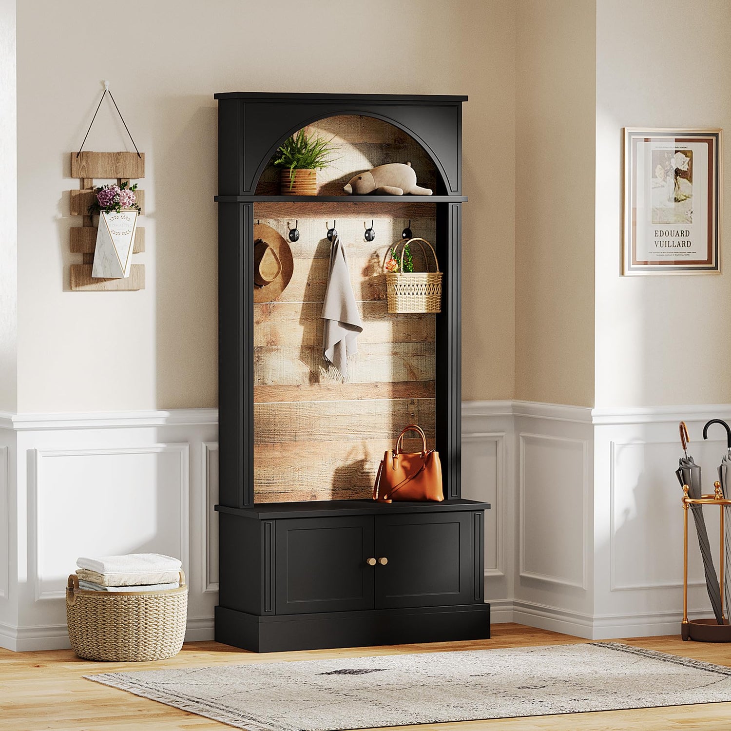- 4-in-1 Design: This entryway hall tree combines 4 key functions—coat rack with 5 hooks, top storage shelf, shoe cabinet, and a storage bench. It maximizes space while providing a convenient seat to change shoes, perfect for busy entryways