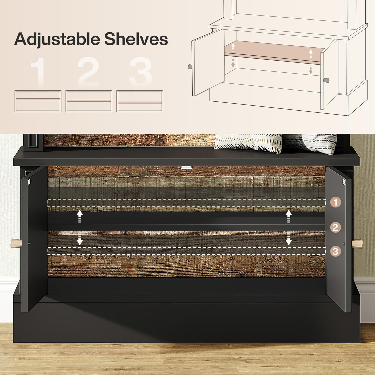 Tribesigns 70.86" Hall Tree with Storage Bench, 4-in-1 Design Entryway Bench with Coat Rack, Farmhouse Hall Tree with 5 Hooks and Adjustable Shoe Storage for Entryway, Hallway(Black+Brown)