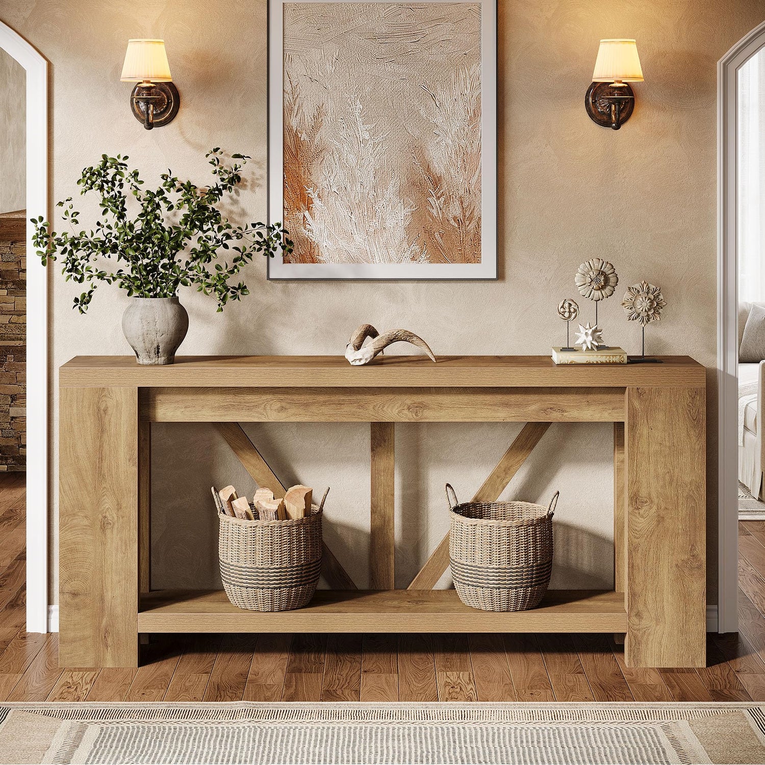 Tribesigns 70.9" Extra Long Entry Table, Farmhouse Wood Console Table with Storage, Modern Accent Sofa Table Behind Couch Foyer Tables for Entryway, Living Room, Entrance, Light Brown