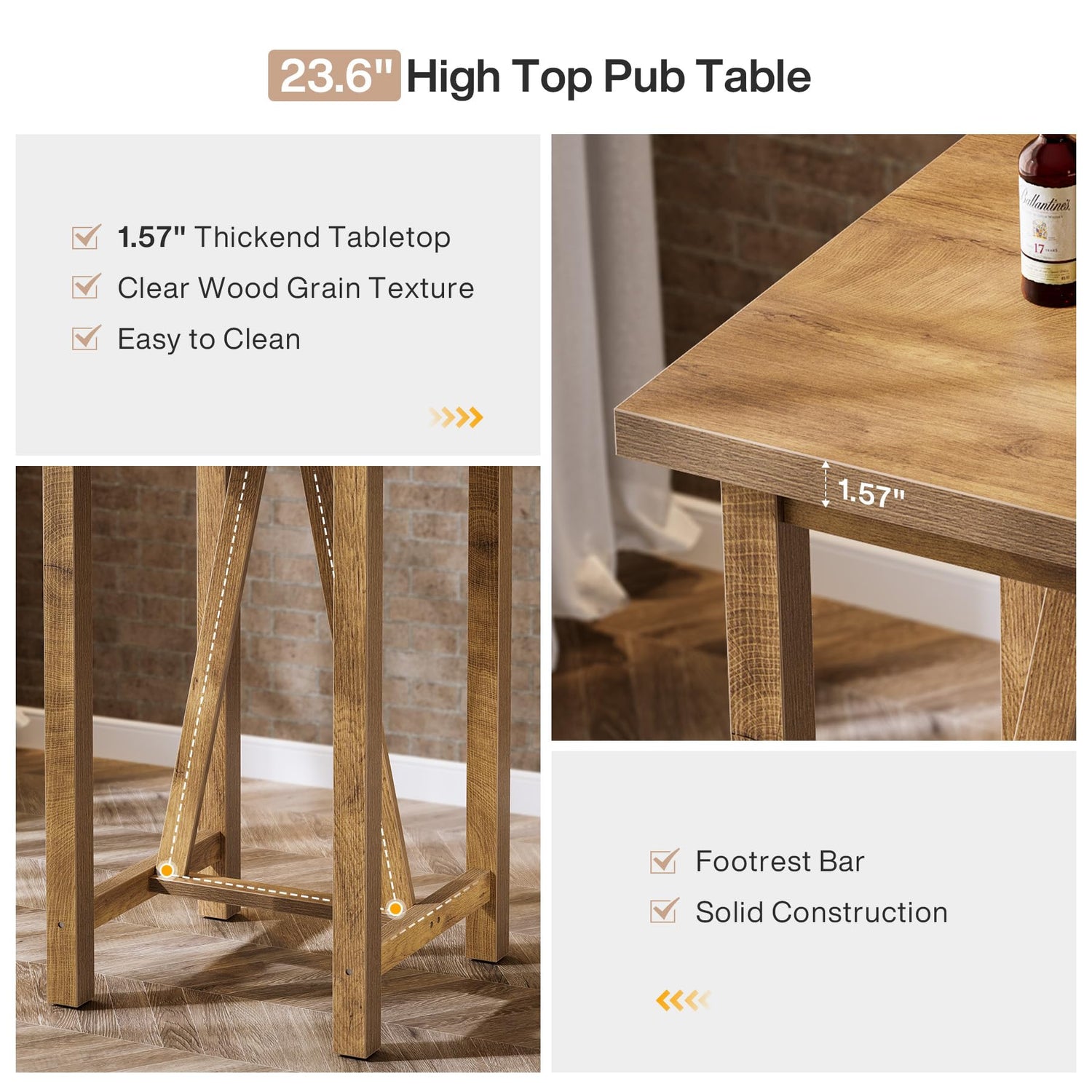 - Counter-Height Bar Table: This square bar table measures 23.6" D x 23.6" W x 39.4" H. It is lightweight and portable, with a long stretcher bar beneath, offering a comfortable spot for resting your feet when sitting at the small high-top table