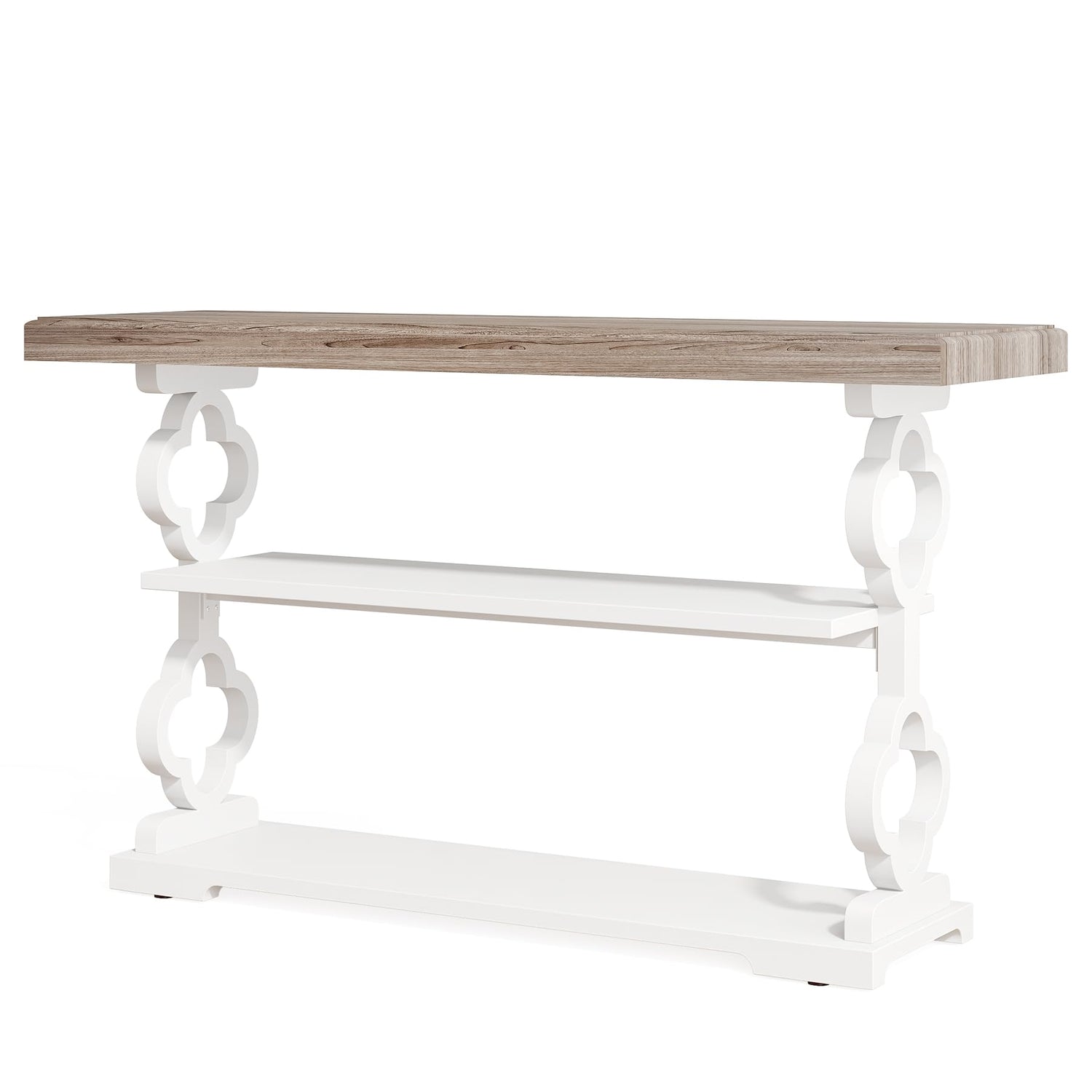 Tribesigns Farmhouse Console Table, 55 inch Rustic Entryway Sofa Table with Storage Shelves, 3 Tier Wood Long Accent Entry Table for Hallway, Entrance, Living Room, Foyer, Grey and White