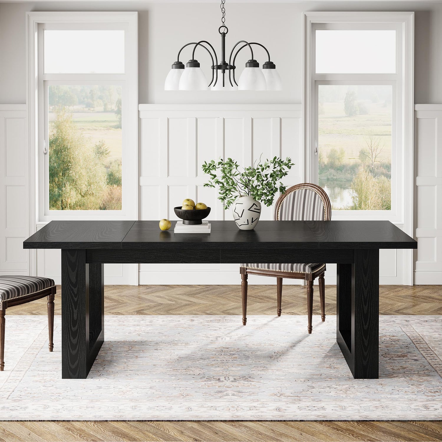Tribesigns Farmhouse Dining Table for 4-6 People, 63-Inch Wooden Kitchen Furniture with Solid Wooden Pedestal, Large Rectangular Dinner Table for Dining Room (Black)
