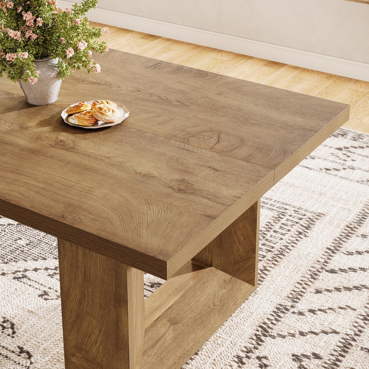 Tribesigns Farmhouse Dining Table for 6-8, 63-Inch Rectangle Kitchen Table with Strong Geometric Frame for Kitchen & Dining & Living Room (Natural)