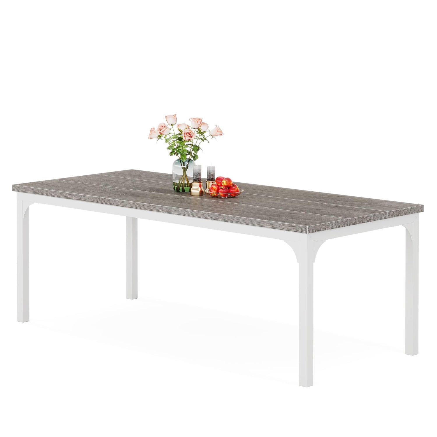 Tribesigns Farmhouse Dining Table for 6-8, 70.9 Inch Rectangular Wood Kitchen Table with Heavy Duty Metal Legs, Industrial Dinner Table for Dining Room, Living Room, Grey and White
