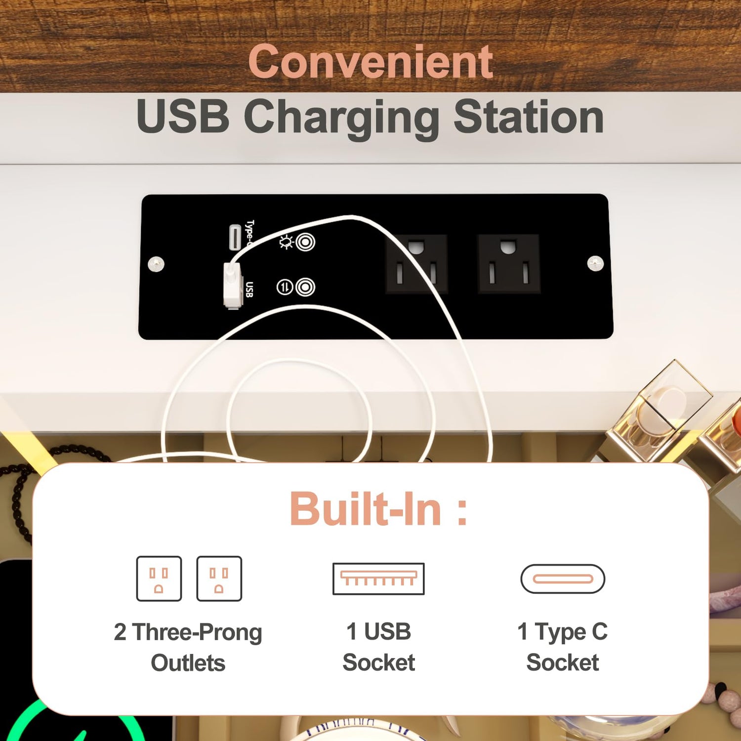 - Convenient Charging Station: Featuring a built-in USB charging port, this mini vanity desk lets you conveniently charge your devices while getting ready, keeping your electronics powered and easily accessible.