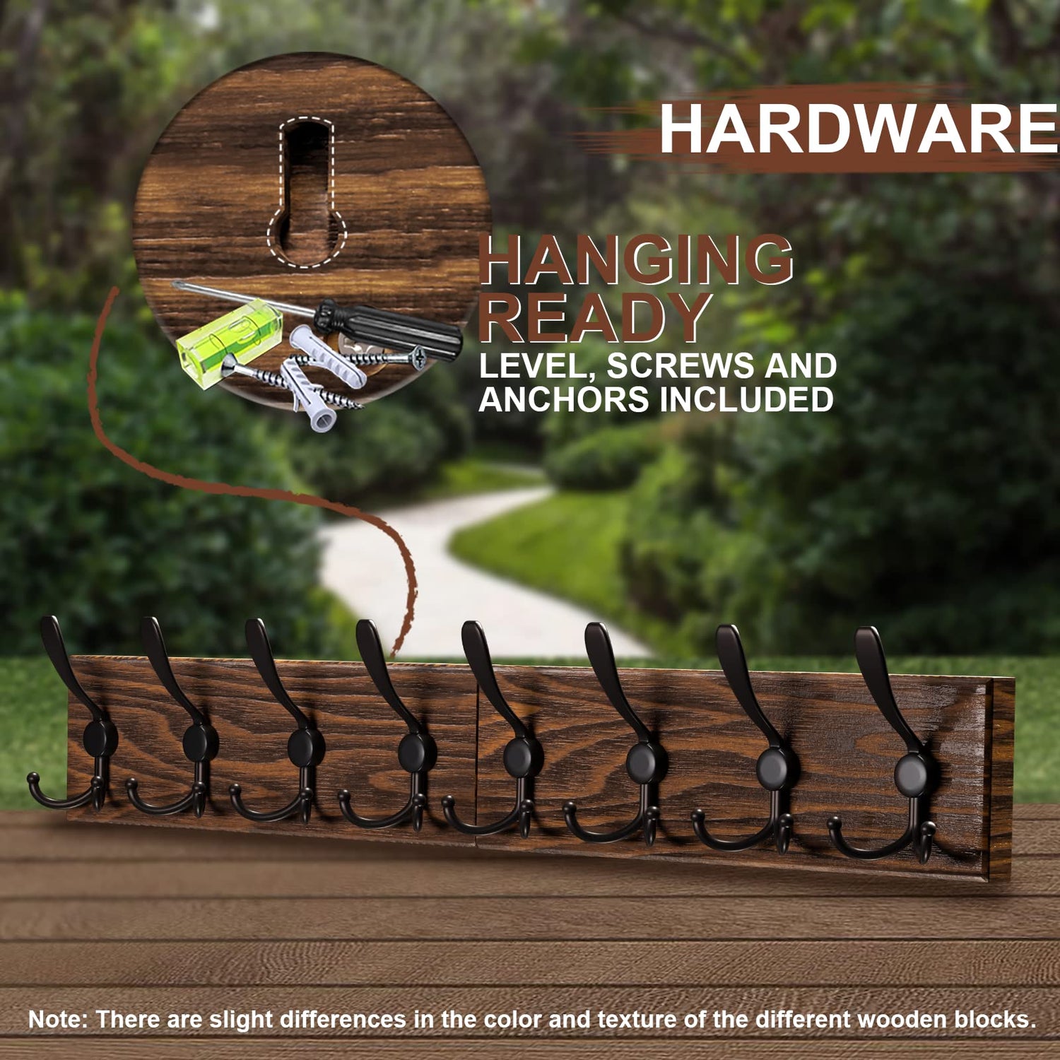 - STURDY AND DURABLE: U-Chain wall mounted coat hooks made of solid pine wood (not MDF or soft pine),High-density natural wood improves the texture and durability of the wall coat hooks. Fine craftsmanship adds rustic, healthy, safe and eco-friendly features. 8 heavy duty Tri hooks are solid, durable, waterproof and rustproof,your things are always weight securely