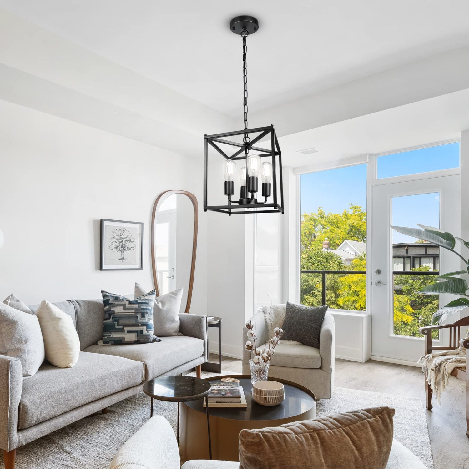 • Height Adjustable: The lantern pendant light total length of the chain is 60.43 inches, you can adjust the length easily according to your needs. And the ceiling light fixture can be applied to flat or sloped ceiling, it can create a modern atmosphere to match your home