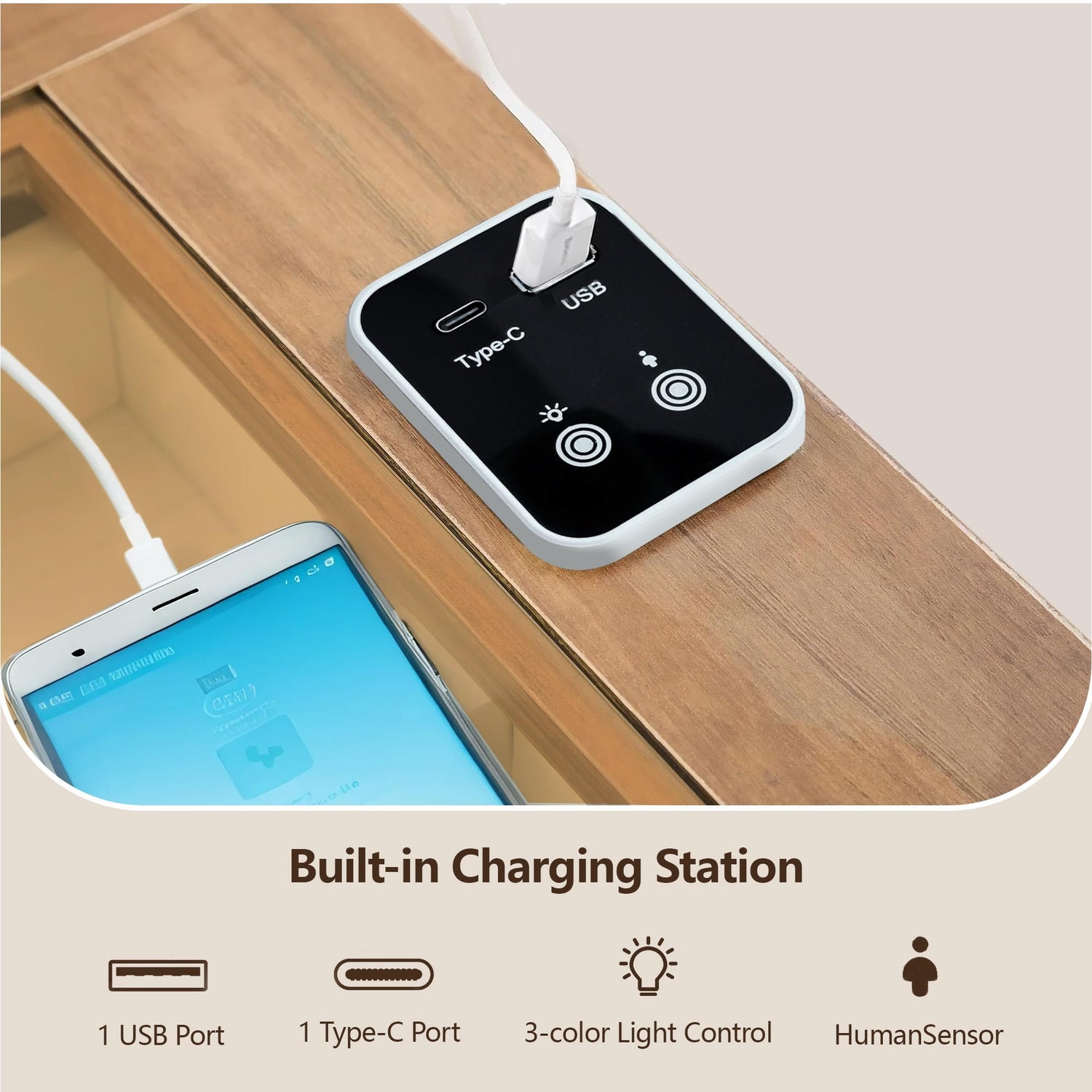 - 【Smart Sensor LED Lighting】 Equipped with motion-activated LED light strips under the countertop, this farmhouse dresser for bedroom automatically lights up when you approach. It ensures clear visibility for finding items and adds a warm, inviting ambiance to your space.