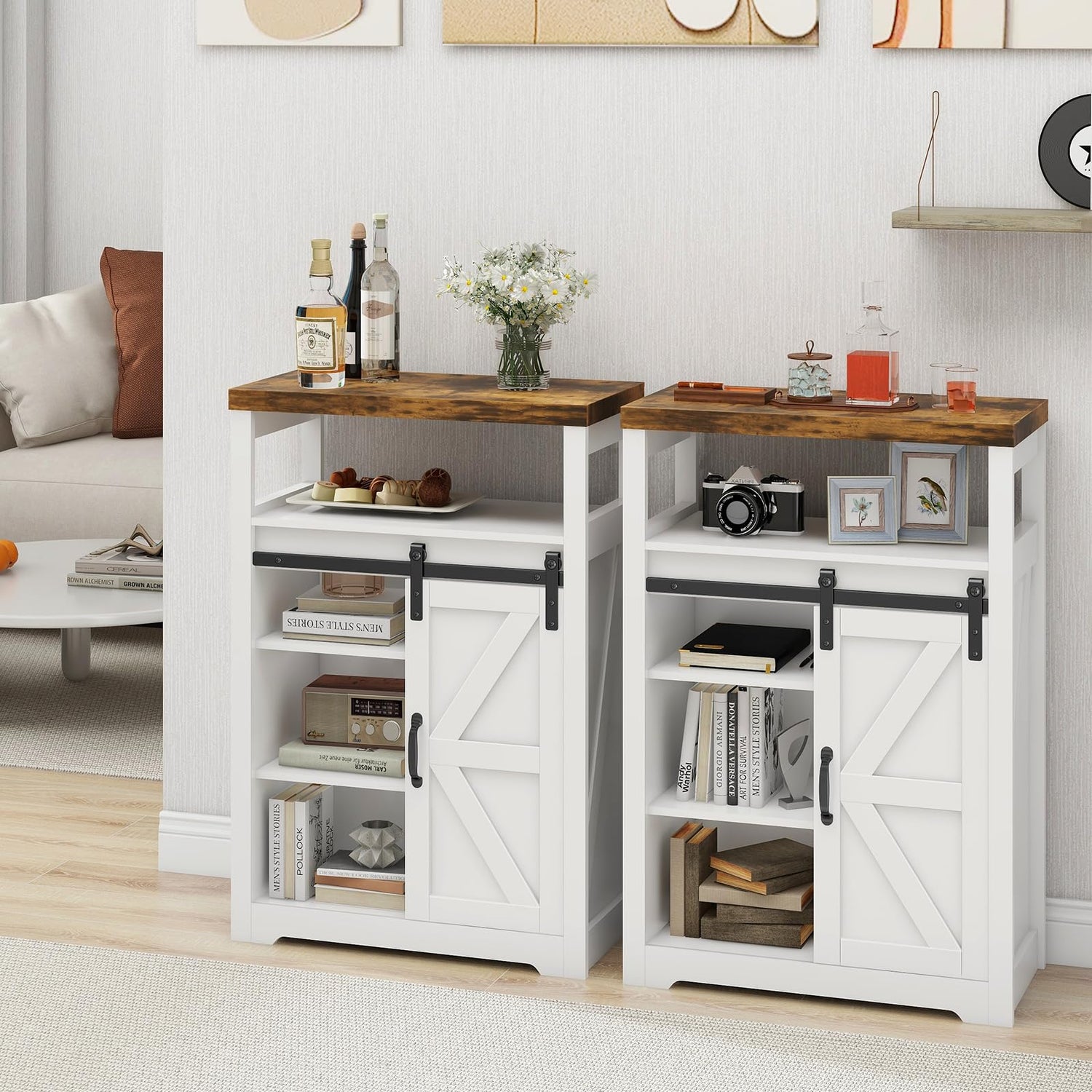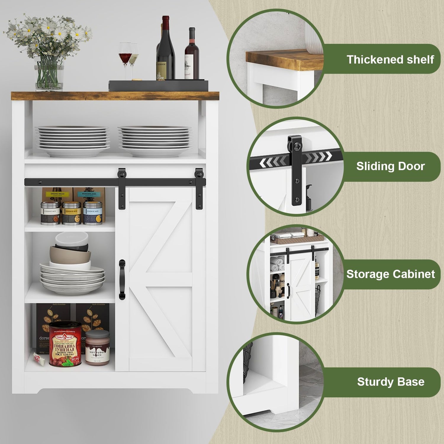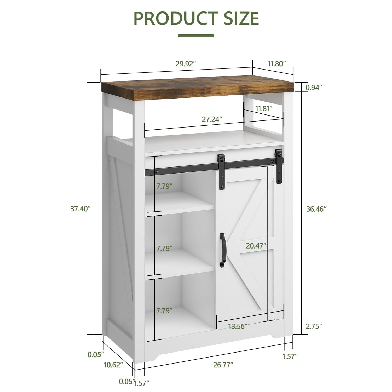 - ☘️Farmhouse Style Charm: Embrace the rustic elegance of farmhouse decor with our cabinet's carefully crafted design. The intricate wood grain patterns and the sliding barn door not only add visual appeal but also infuse your space with a cozy, inviting atmosphere reminiscent of country living.