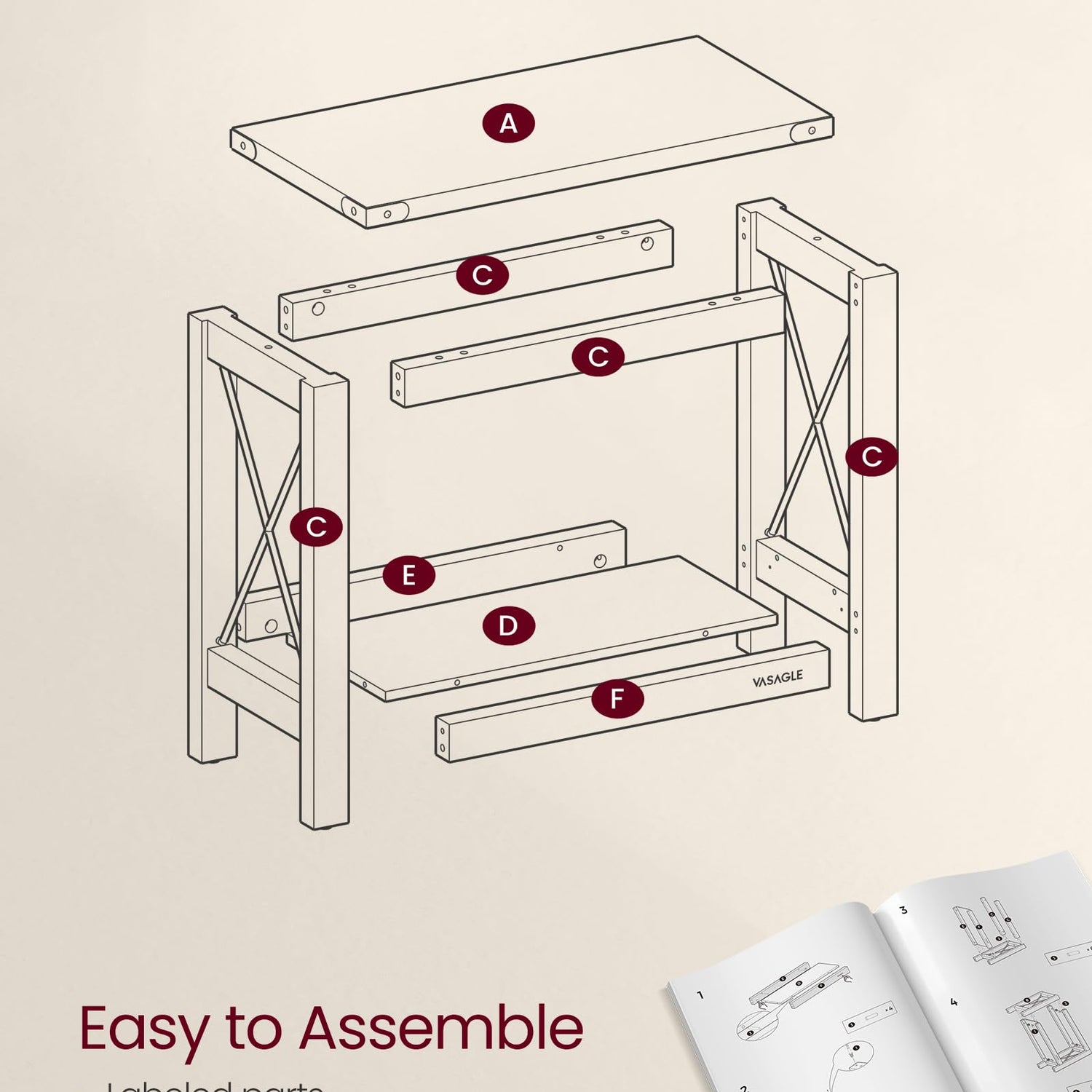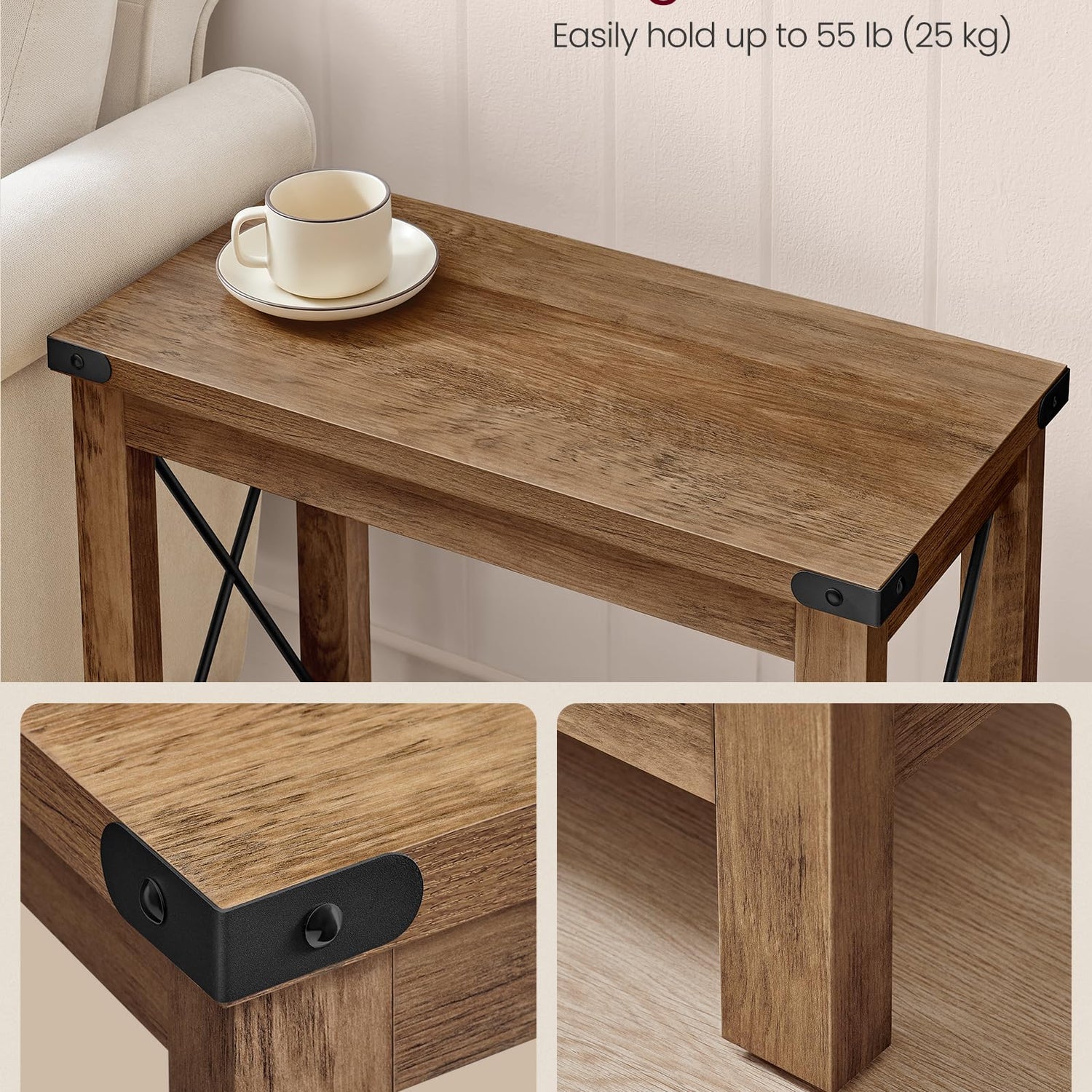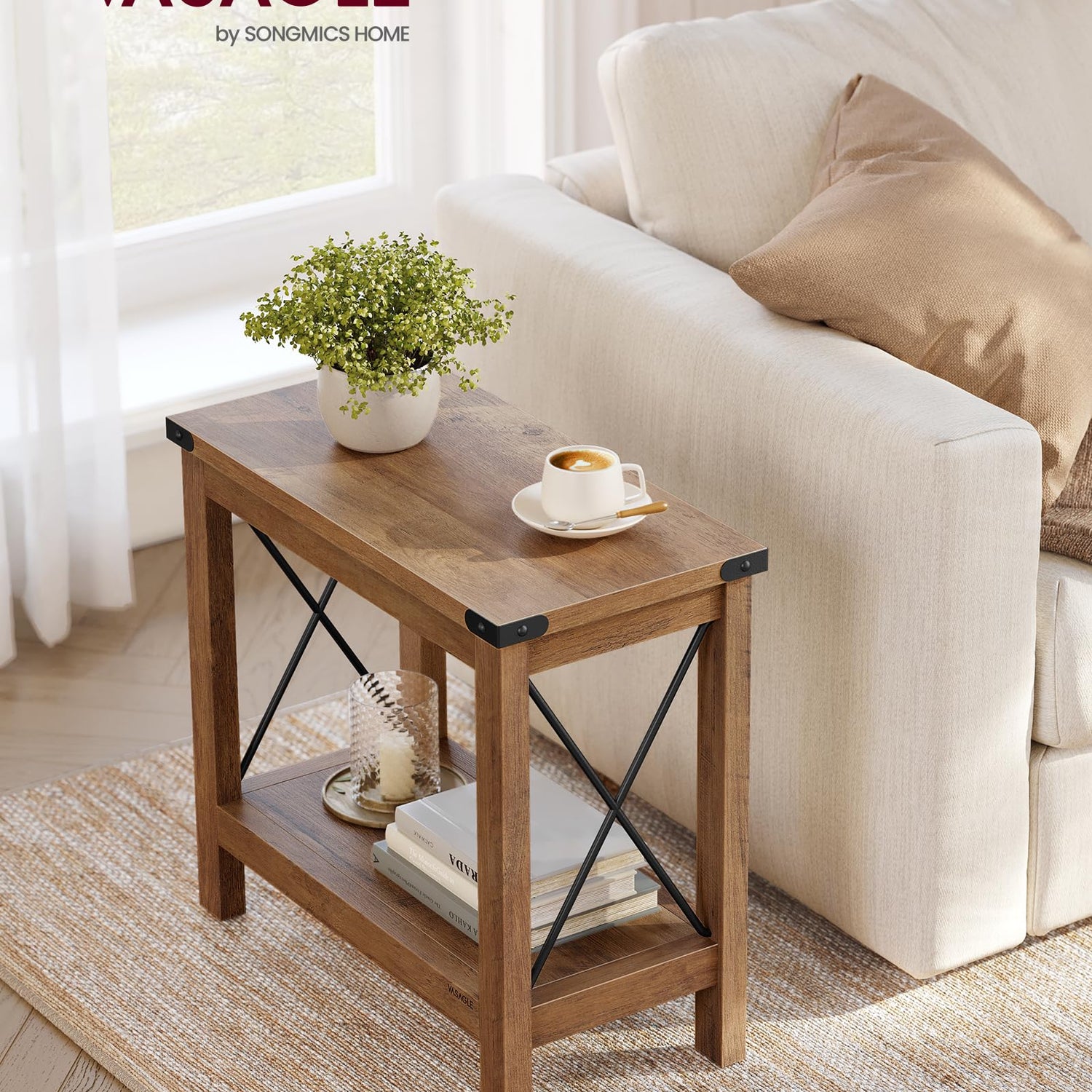 VASAGLE 2-Tier End Table, Side Table with Bottom Shelf, Nightstand for Small Spaces, for Living Room, Bedroom, Farmhouse Style, Honey Brown ULET235K41
